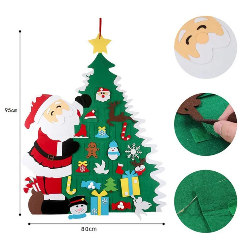 Детская Рождественская елка: подходит для детей старше 3 лет. Дает детям шанс сделать своими руками собственную рождественскую елку. Тенденция к рождественскому подарку. Декорирование дома путем подвешивания на стену, дверь, камин и так далее.