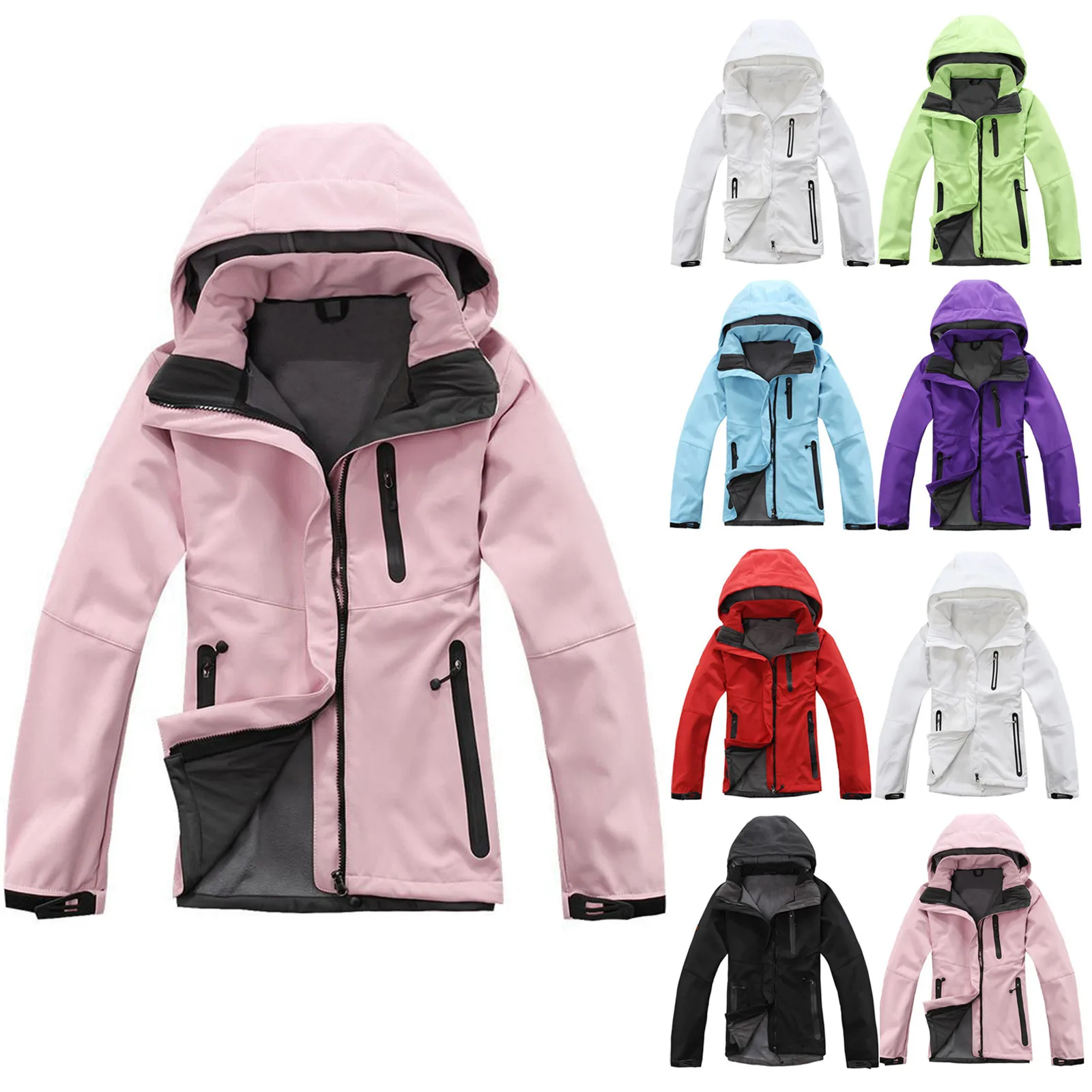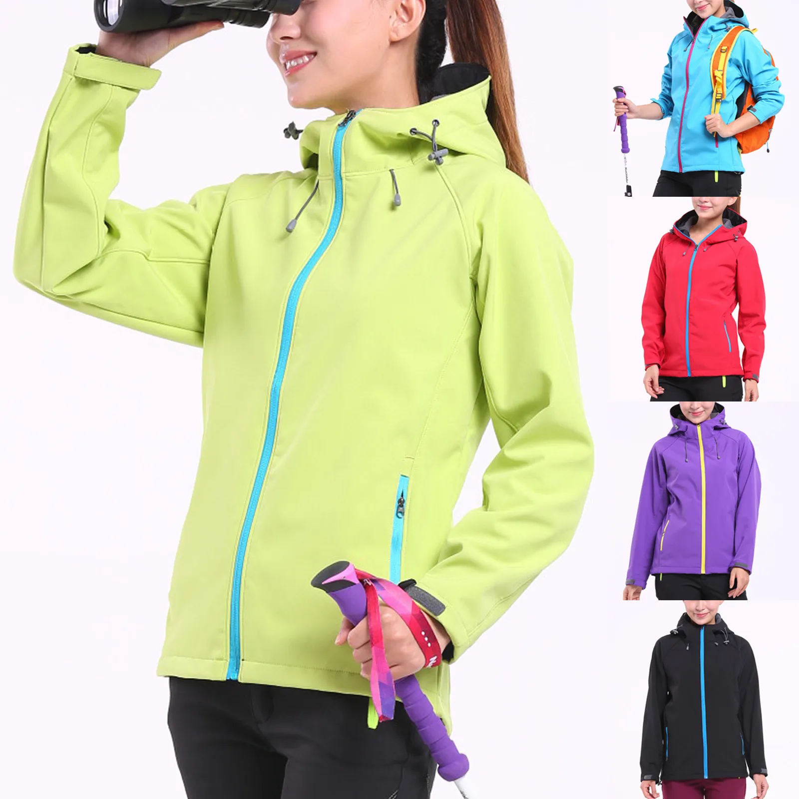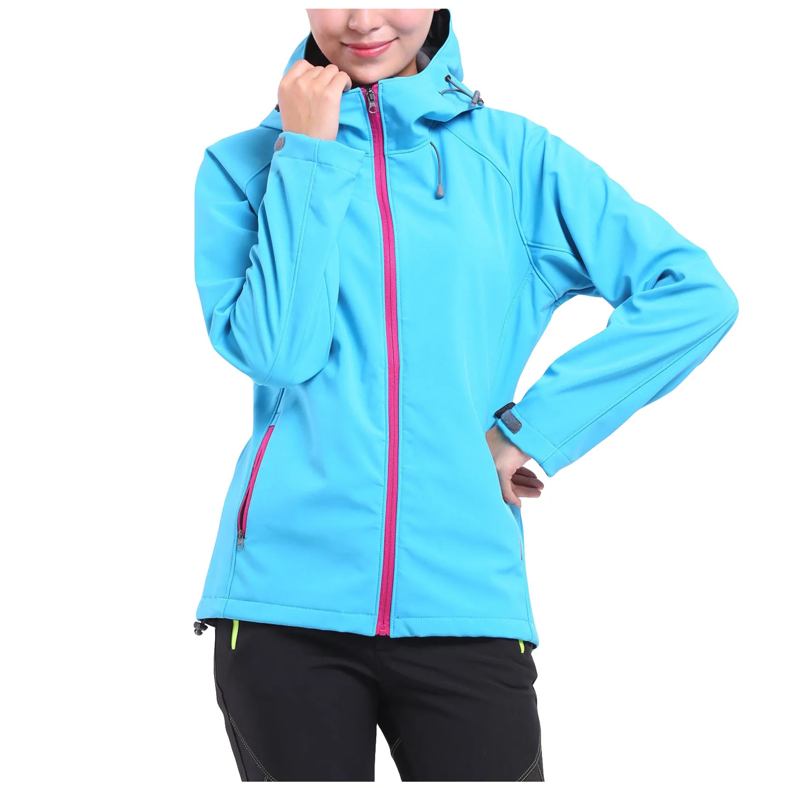 Спортивные и уличные Женские однотонные водонепроницаемые куртки с капюшоном пальто для альпинизма на молнии