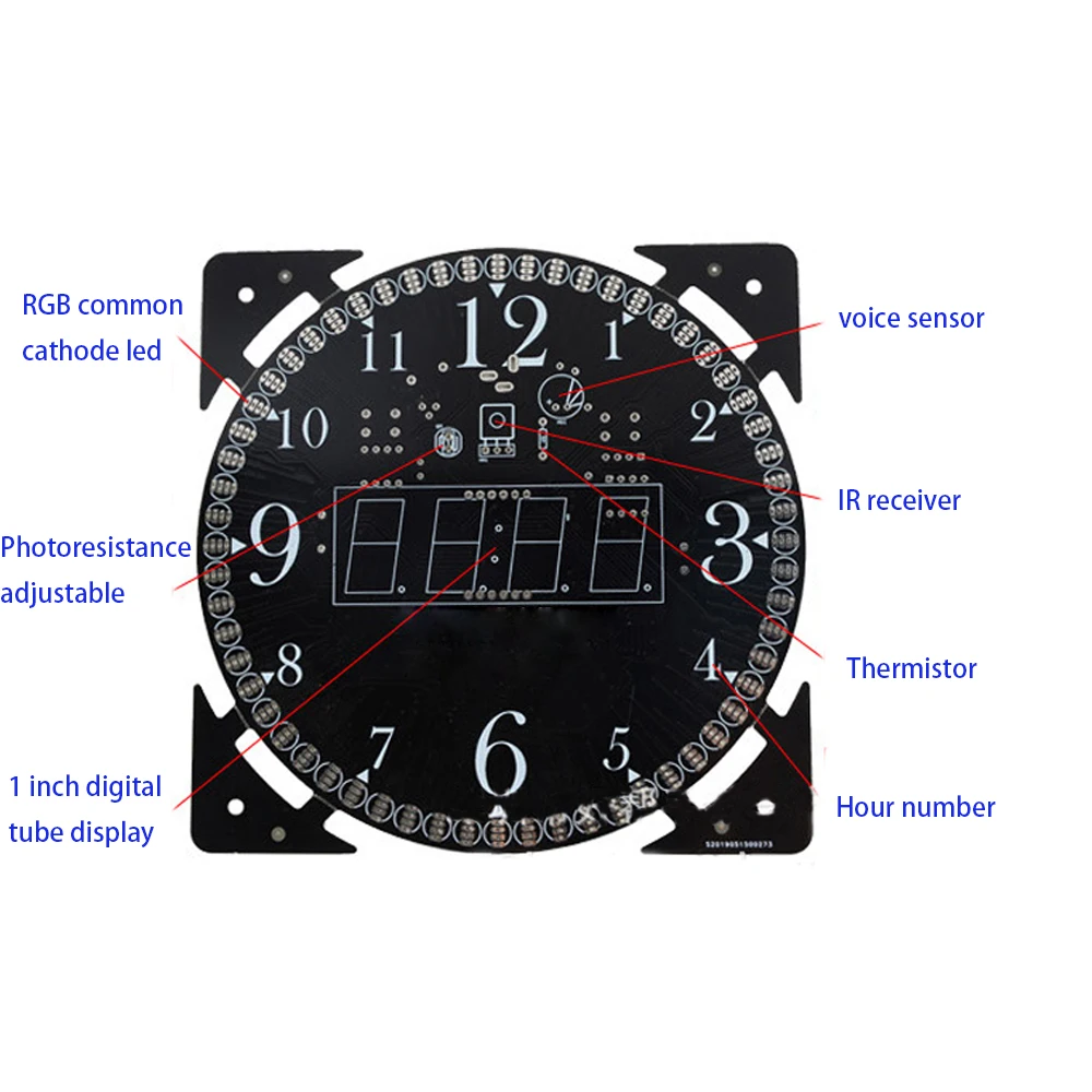 1. Цифровые трубки отображают 7 режимов: Время, год, дата месяца, автоматическое переключение Температура Время Год Месяц, дата Неделя Время, дата, автоматическое переключение 2,60 шт RGB светодиодный дисплей Зеленый: час Синий: мин Красный: сек 10 видов режима вспышки, пожалуйста, посмотрите видео 3. Настройка сигнализации, встряхните будильник, чтобы выключить 4. Пульт дистанционного управления 5,12/24 часа в сутки переключатель 6. Температурная 5-уровневая калибровка, по умолчанию 3, можно регулировать 1-5 7,4-пути будильник 8,13 видов будильника mosic 9. Время будильника составляет 5 минут, вы можете нажать кнопку, дистанционное управление и наклонить переключатель мяча, чтобы остановить будильник
