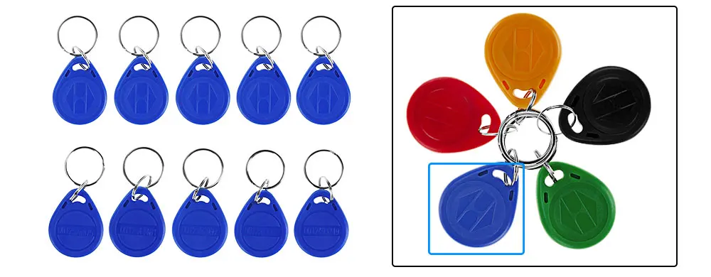 Материал: АБС-пластик Рабочая частота: 125 кГц Особенность: только чтение, не поддерживает запись. Расстояние считывания: 0-10 см На каждом есть уникальный идентификационный номер Цвет брелоков: Мы отправим синий по умолчанию, если вам нужен другой цвет, пожалуйста, отправьте нам сообщение. Количество: 10 шт.