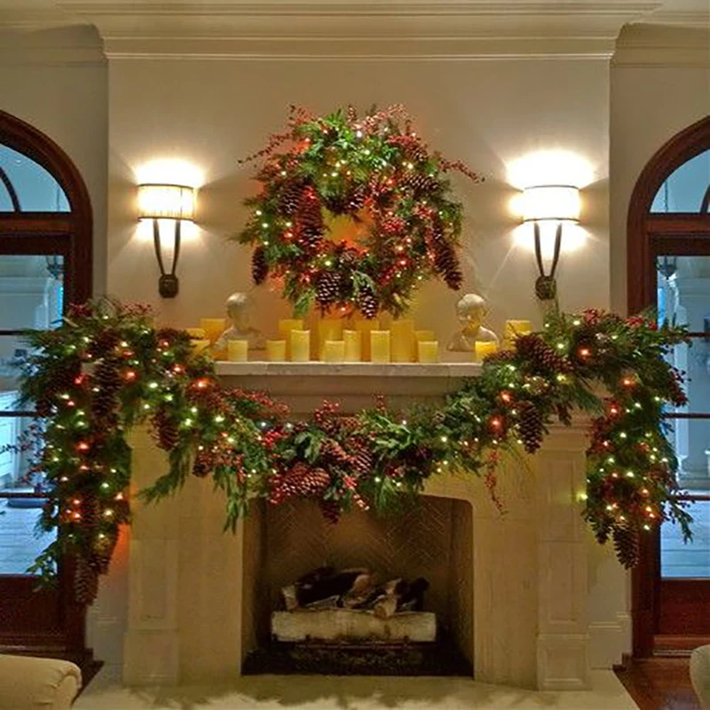 Рождественский венок, искусственная Виноградная лоза, висячая Цветочная листва, гирлянда, рождественские украшения на новый год, Рождественский шнурок, Виноградная лоза