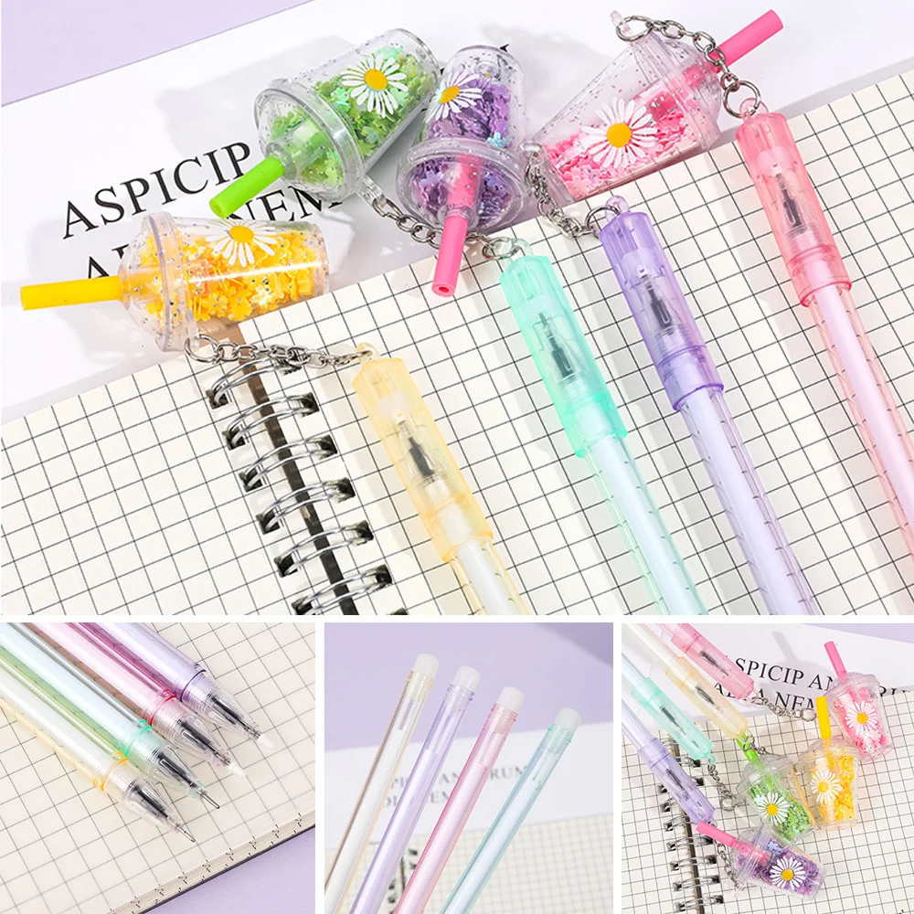 1 шт. кавайные креативные гелевые ручки 0,38 мм с черными чернилами Маргаритка подвеска нейтральный карандаш канцелярские принадлежности для подписи школьные письменные принадлежности для студентов