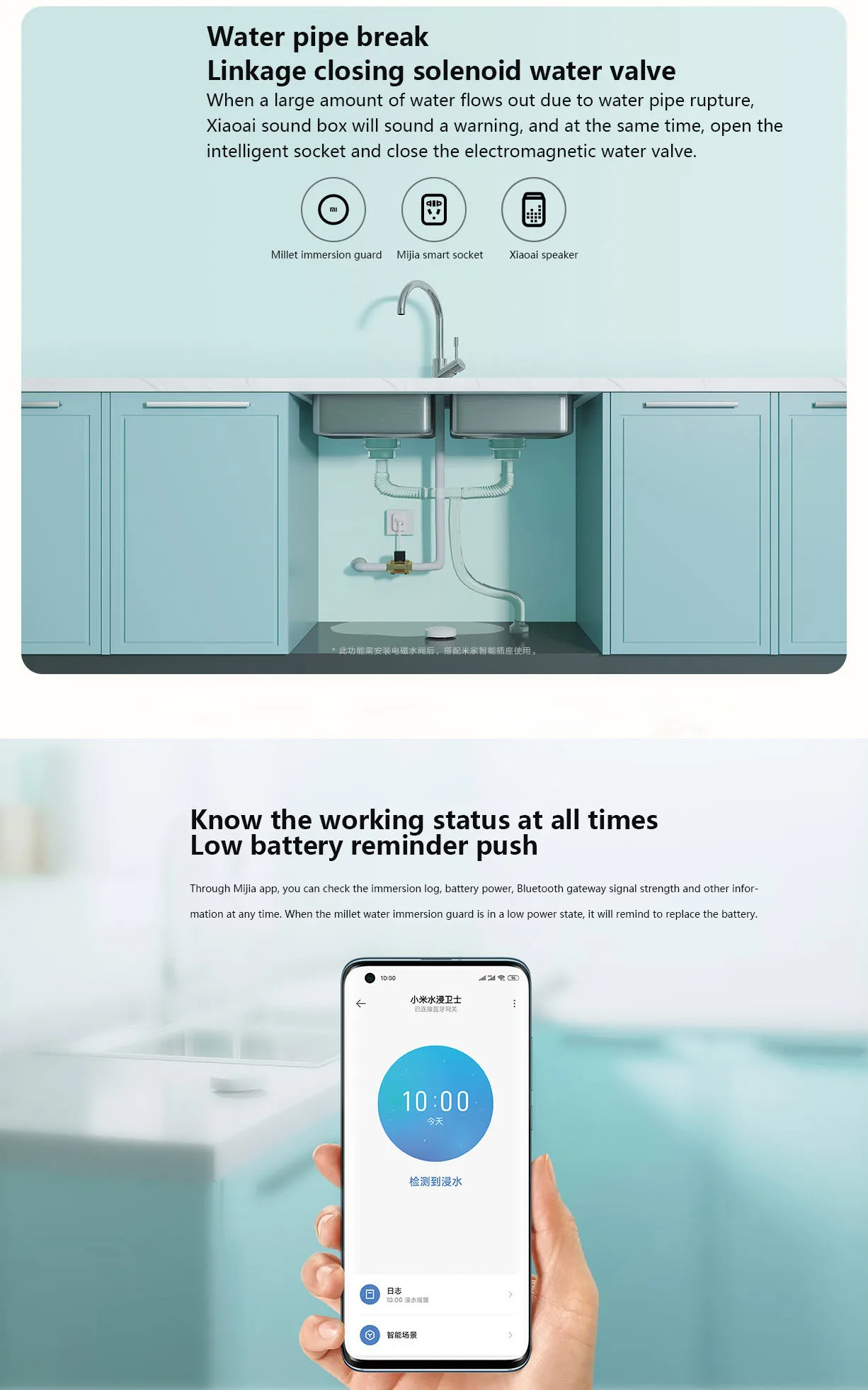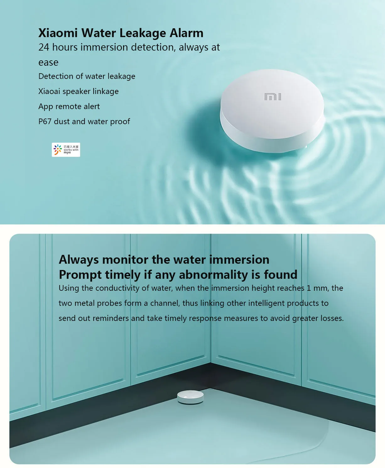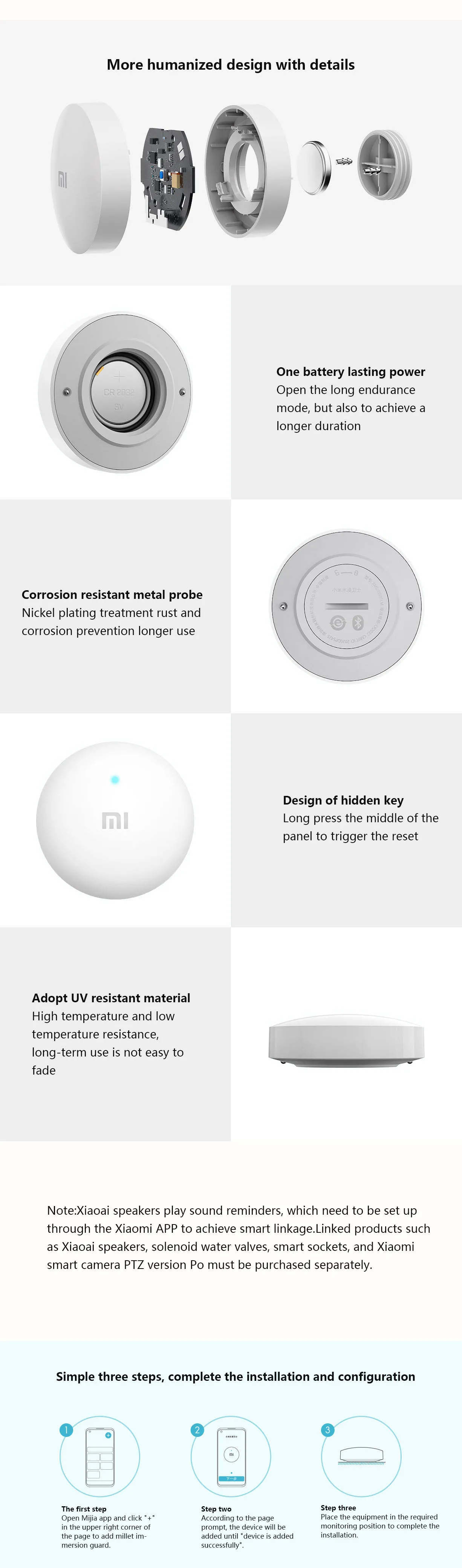 Xiaomi умный датчик утечки воды умный детектор воды беспроводной Ip67 с приложением Mijia детектор утечки сигнализации для домашнего сейфа Размер изделия: 50x17 мм Беспроводное подключение: версия Bluetooth 5,0 Рабочая температура: 0 ℃ ~ 55 ℃ Степень защиты: p67 Вес: 23 г
