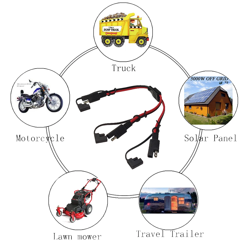 Номер товара: JKM-SAE-091 Название продукта: SAE 1-2 кабель Спецификация: 2468 14AWG Качество материала: вся медь. Сверхмощный, толстый и прочный. Напряжение: 12-24 В Ток: 1-30A Скорость работы: 300 В Длина: 0,33 м (33 см) Диаметр провода: 3,5*7,0 мм Вход интерфейс: 4,5 мм мужского и женского пола терминалы Выход интерфейс: 4,5 мм мужского и женского пола терминалы Вес изделия: 60 г Характеристики продукта: используется в солнечных зарядных упаковках, батареях, портативных шнурах питания, модификации автомобильного аккумулятора и зарядке электрического велосипеда. Кабели SAE можно собрать в чехол. Удлинитель SAE для зарядного устройства и устройств с разъемами sae. Подходит для большинства зарядных устройств с быстроразъемными разъемами SAE. Разъем Sae С Пылезащитным колпачком-защищает интерфейс Sae от пыли и дождевых капель, когда он не используется. Быстрое отключение позволяет удалять электрические компоненты по мере необходимости для обеспечения безопасности или ремонта, перезарядки ar и т. д. Подходит для подключения солнечной панели, светодиодный полюс, ЭЛЕКТРИЧЕСКИЙ Игрушечный трактор, автомобиль, грузовик, мотоцикл, велосипед, газонный двигатель, RV, яхта, радио, детектор рыбы и другое электрическое подключение инженерных и солнечных систем инженерии. Применение: обновление батареи, газонокосилки, опрыскиватели, солнечные панели, зарядка аккумулятора мотоцикла, автомобиль и мотоцикл.