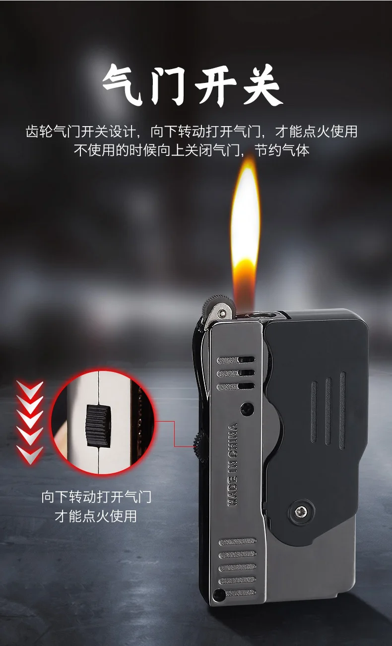 Складные деформационные металлические зажигалки, ветрозащитные газовые зажигалки, Флинт, шлифовальный круг, двойная огнеупорная зажигалка, бутановый фонарь