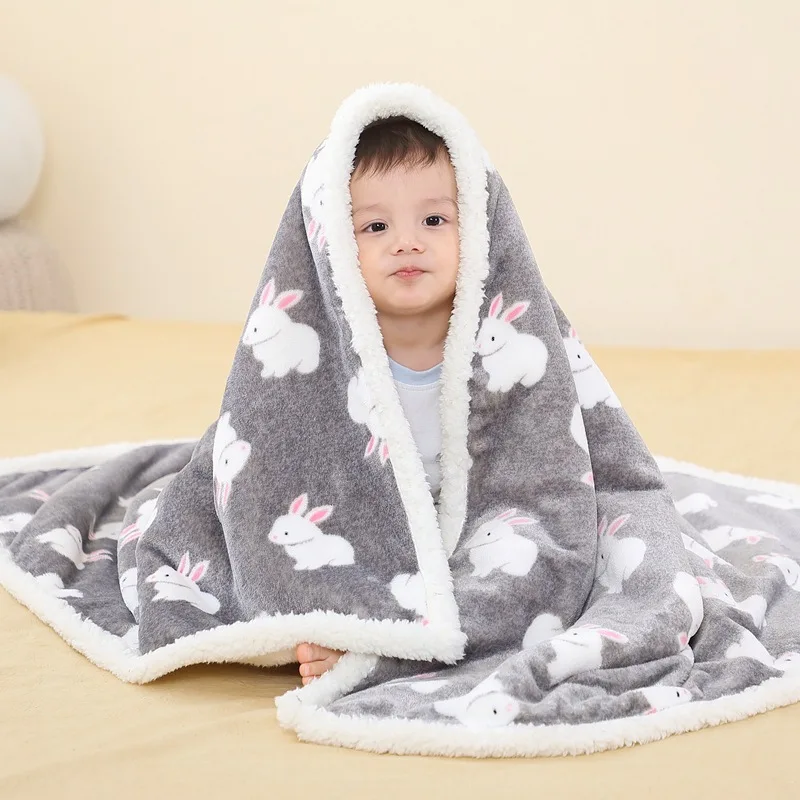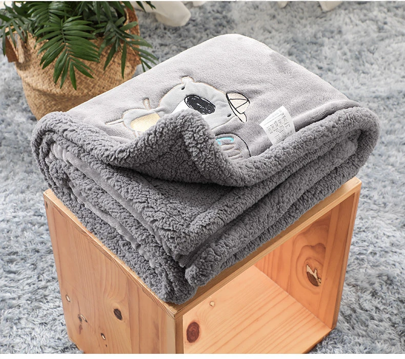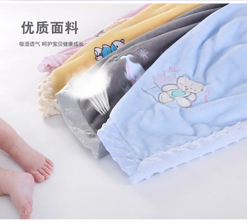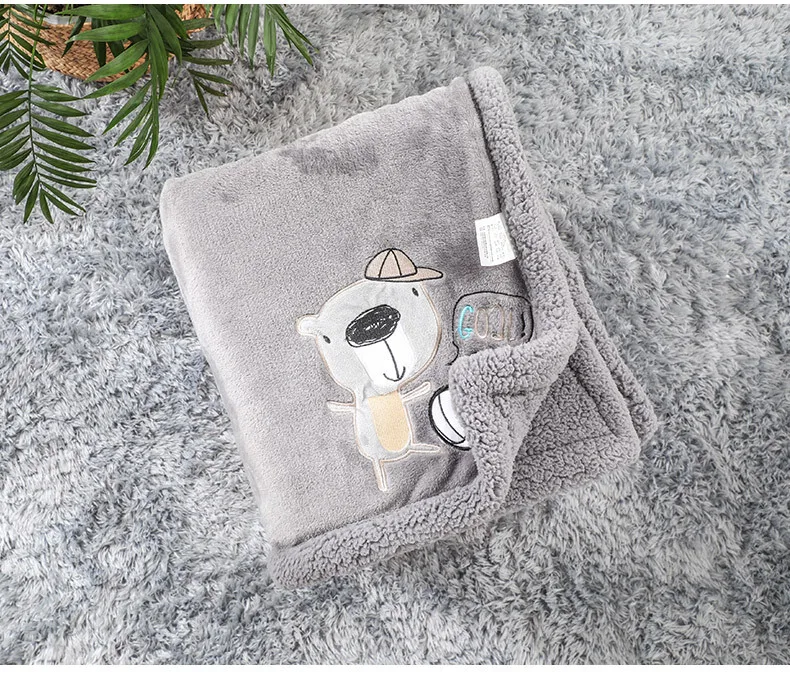 Winter Baby Blankets Newborn Cartoon Bear Embroidery Flannel Baby Blanket Baby Boy Girl Swaddle Wrap Infant Stroller Cover Kids Blanket