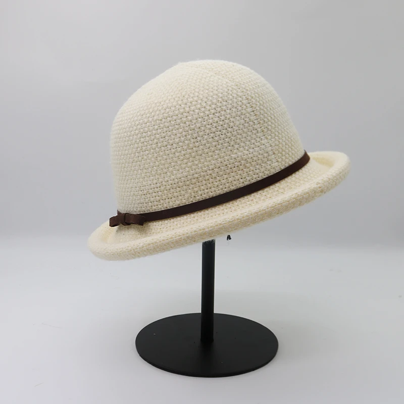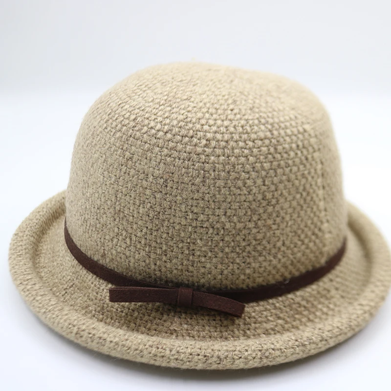 Женская шерстяная фетровая шляпа, церковные шляпы-котелки, ретро мягкая теплая Панама, зимняя шапка с поясом для девушек, простая одежда, церковная Шляпа Дерби, ZZ-314