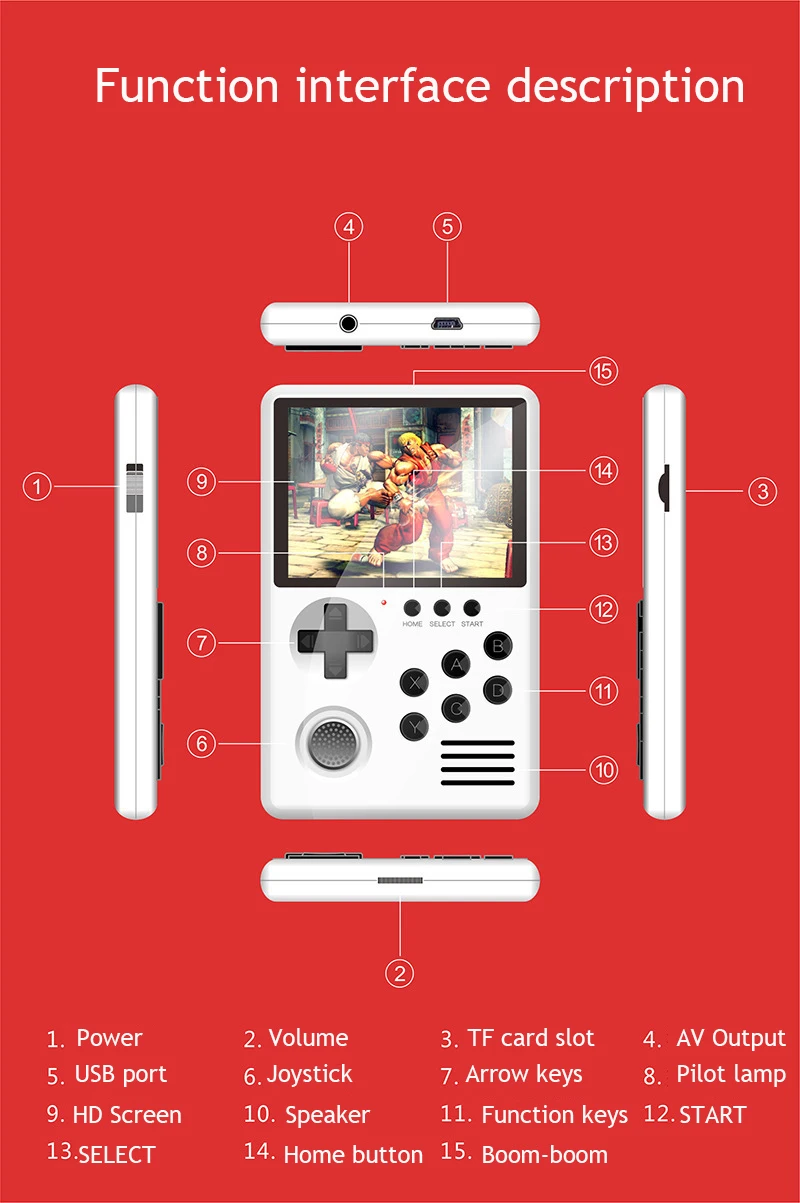 Nema: M3S портативные игровые мини-плееры 16 бит Ретро умная портативная видеоигра USB зарядка игровая консоль с 4G карточкой для игр для детей Цвет: черный, красный, белый, синий Высокоскоростная карта памяти 4G Тип интерфейса USB Проводной режим подключения Видео/аудио интерфейс AV линия Подходит для возраста 6 лет и старше Размер продукта 130*79,4*17,3 мм