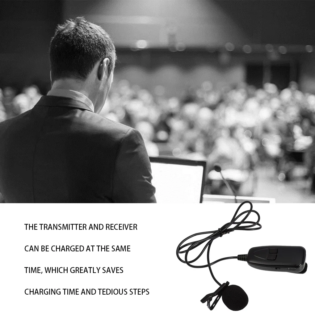Этот беспроводной приемник-передатчик микрофона с отворотом удобен в использовании, автоматически соединяется друг с другом.