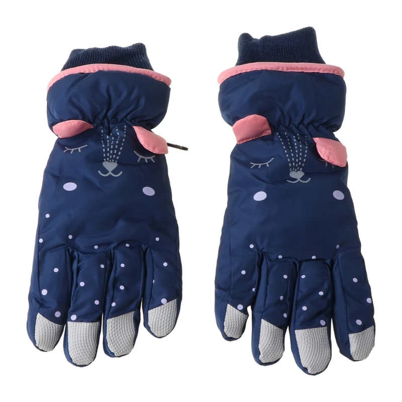 Детские зимние водонепроницаемые зимние перчатки с мультяшными ушками, термоизолированные ветрозащитные спортивные лыжные варежки для сноуборда, Теплые наручные перчатки