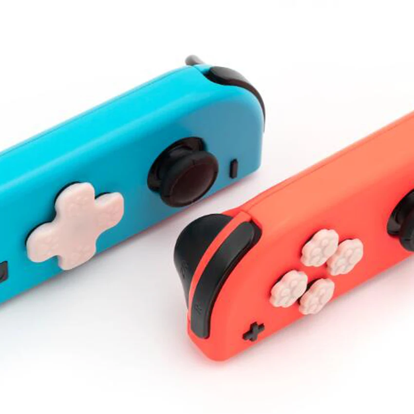 Описание: Материал: силикон Применимые модели: для Nintendo Switch / Switch Lite Цвет: розовый/синий Стиль: лапа, любовь Особенности: Новая гетеросексуальная форма кошачьего когтя, колпачок для мяса, вивидан. Приятно ощущать форму кошачьей лапы с трехмерным тиснением, добавьте больше удовольствия вашей игре. Оригинальная машина имеет отверстие формы 1:1, которая не трясется в течение длительного времени, увеличивает захват, не подвергается деформации и обесцвечиванию. Посылка входит: Направление ABXY ключ наклейка Или Направление ABXY наклейка для ключа + 4 колпачка для захвата большого пальца