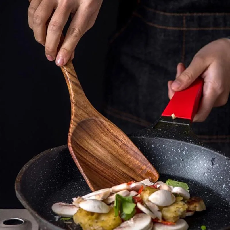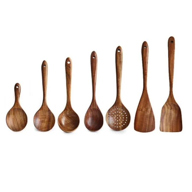 Размер: ложка для риса 18*8 см, ложка для готовки 24*7,5 см, маленькая ложка для супа 26*6 см, ложка с прорезями 28,5*8 см, большая ложка для супа 26*8 см, плоский шпатель 31,5*7,5 см, шпатель 34*8,5 см