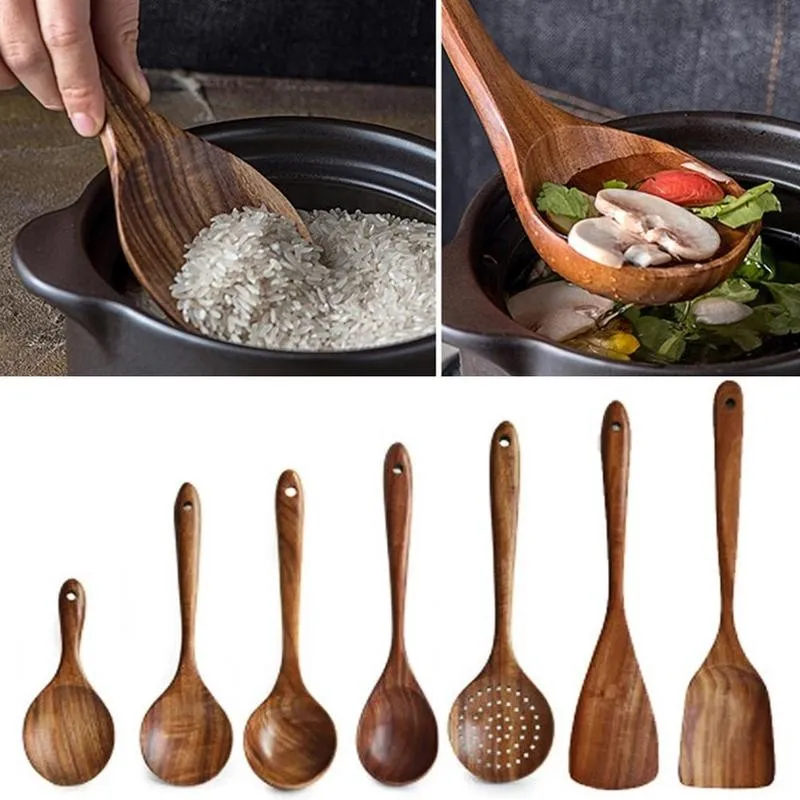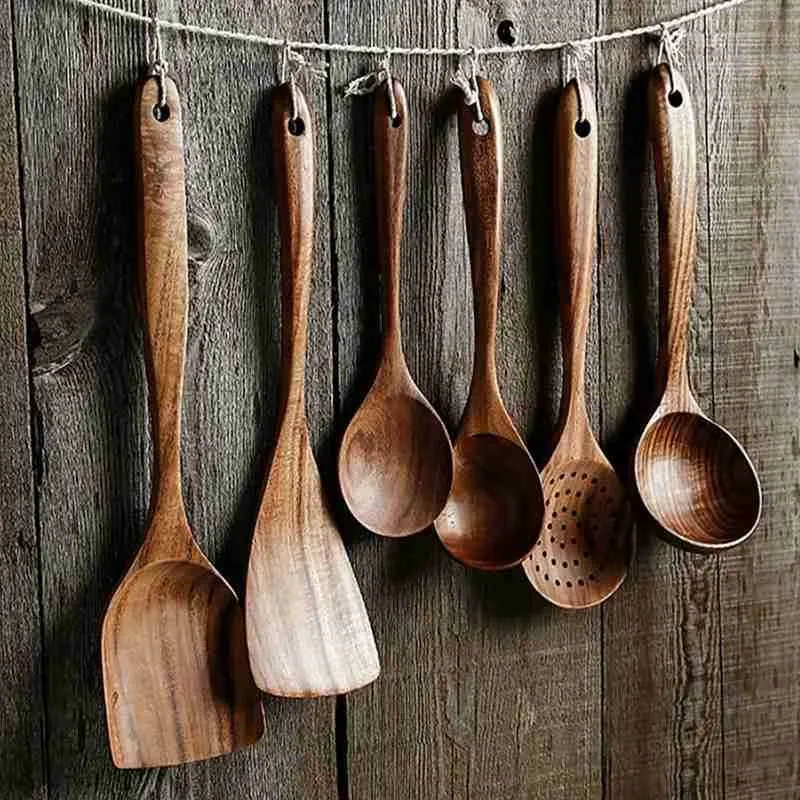 Деревянная посуда из натурального дерева ложка Тернер с дуршлаг для риса шумовка для супа Пособия по кулинарии ложки Совок Кухня кухонная утварь
