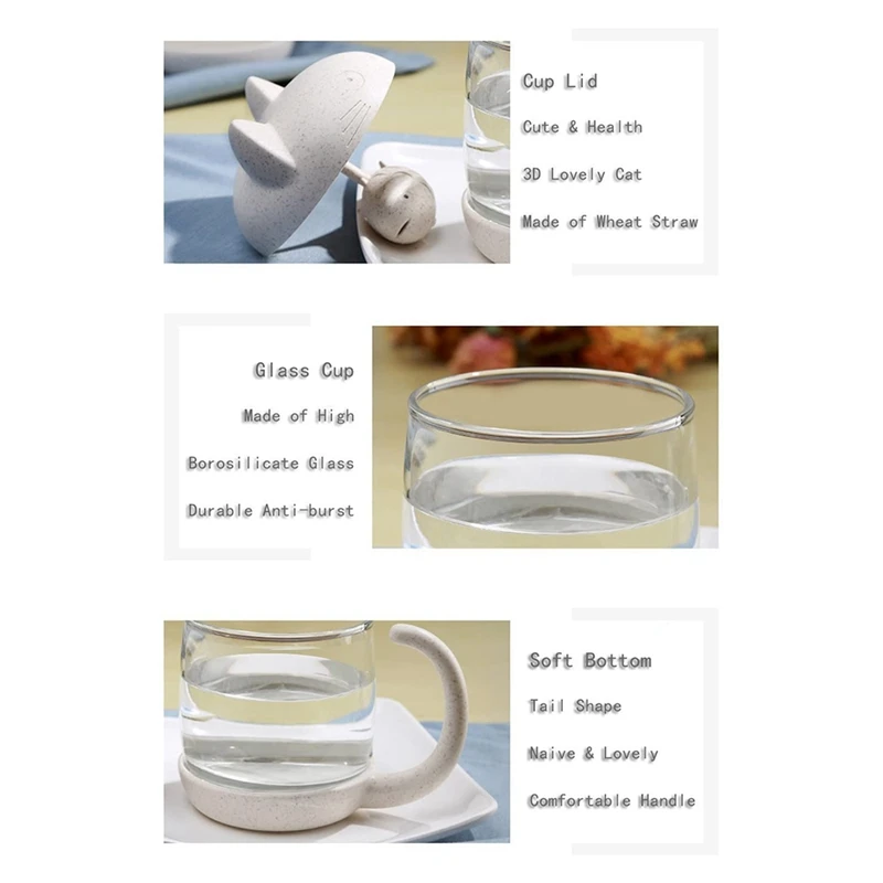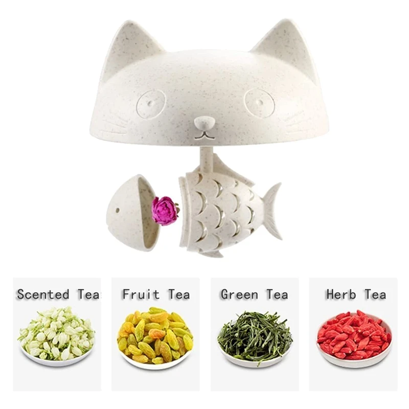 Милый Кот Стекло чашки Чай кружка с рисунком рыбы, Чай Infuser Filter-250ML(8 унций)-(бежевый)