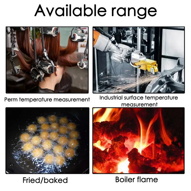 <Широкое применение: Может использоваться для измерения температуры поверхности труб горячей воды, частей горячего двигателя, кухонных поверхностей, горячих труб и изоляции и многого другого.