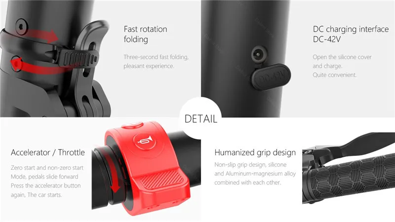 1. Максимальный диапазон и скорость отличаются из-за различного веса водителя, мастерства эксплуатации, состояния дороги и погоды. Наш тест был сделан водителем весом 55 кг на ровной и гладкой дороге.