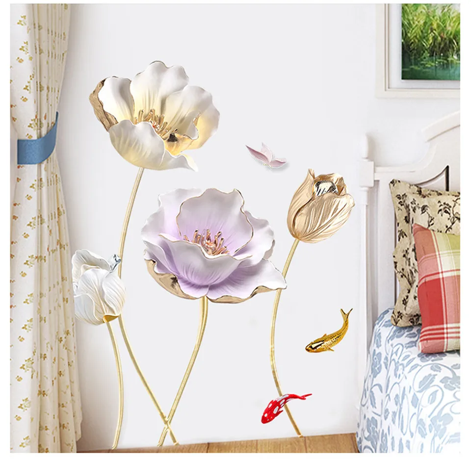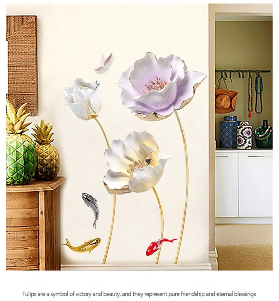 Большой тюльпан цветок бабочка настенные наклейки для спальни гостиной настенный Декор DIY рельефные цветочные виниловые наклейки украшение дома