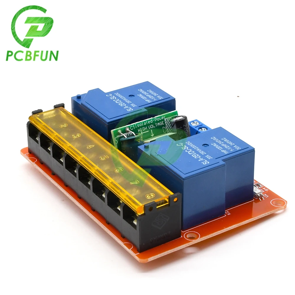 2-канальный релейный модуль 30 А, постоянный ток 5 В, релейный модуль управления запуском высокого и низкого уровня, релейная плата переключателя, 100-250 В переменного тока, модуль реле мА