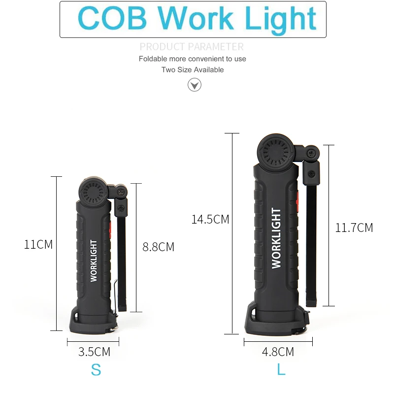 ☀[Магнитное основание и поворотный крючок] Встроенный сильный магнит прочно прилегает к автомобилю или любой металлической поверхности, и поворотный крючок, скрытый в нижней части рабосветильник, легко использовать для экстренного ремонта дороги, работа в ночное время или многоцелевая работа