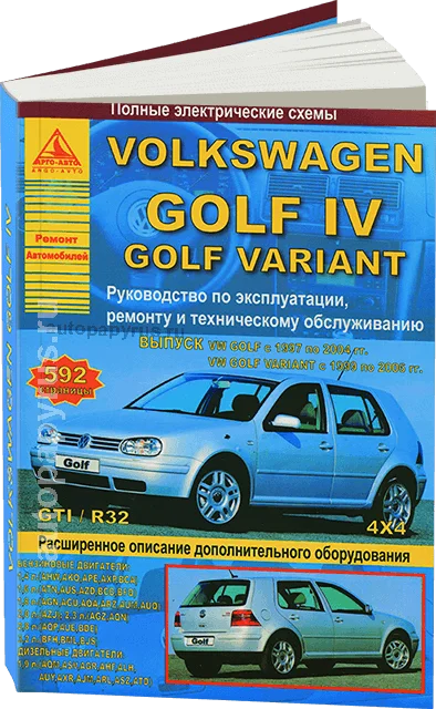 Руководство по ремонту и обслуживанию Volkswagen Golf 4 / GTI / R32 / 4х4 с бензиновыми и дизельными моторами всех типов.
