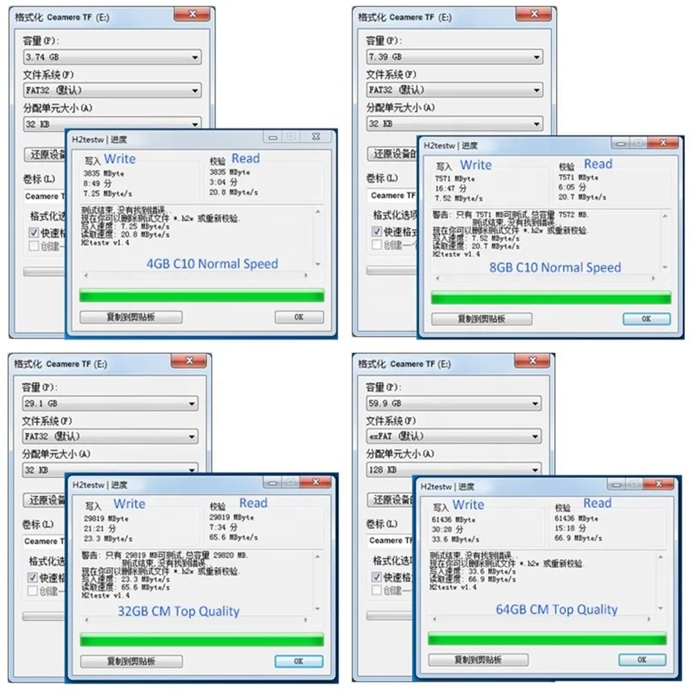 Формат памяти по умолчанию в пределах 32G FAT32, а формат памяти 64G и выше по умолчанию-NTFS или exFAT. Большинство устройств хранения данных (например, камеры, регистраторы и т. д.) поддерживают только формат FAT32. Если вы покупаете емкость выше 64 ГБ, необходимо отформатировать на компьютере или устройстве. * рекомендуется отформатировать все карты памяти перед использованием, чтобы избежать потери данных.