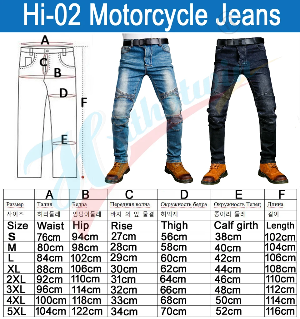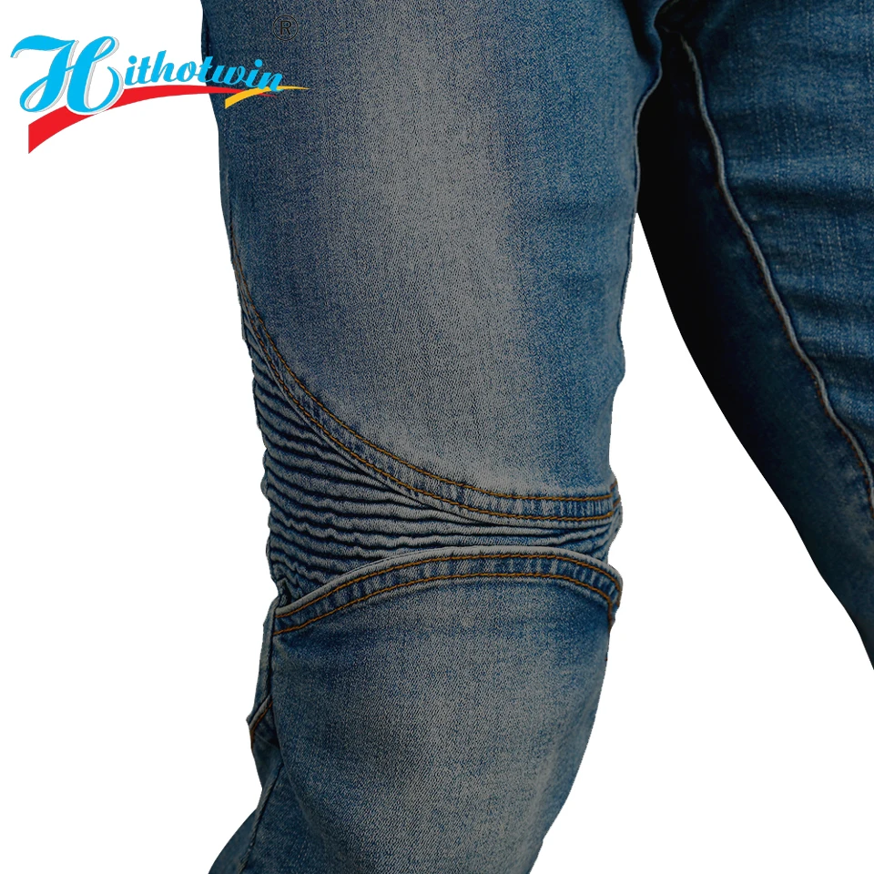 Используется эластичная джинсовая ткань 12 унций, высокая износостойкость и удобство. Дизайн Smocking на передних коленях и талии сзади позволяет свободно перемещаться и чувствовать себя комфортно во время езды на мотоцикле. Съемные CE одобренные 2 шт. наколенники Двойная кнопка и металлическая молния Модные, удобные и защитные брюки, ваш лучший выбор как для гонок, так и для повседневной носки. Бренд: Hithotwin Пол: унисекс Цвет: синий и черный Размер: XS, S, M, L, XL, 2XL, 3XL, 4XL
