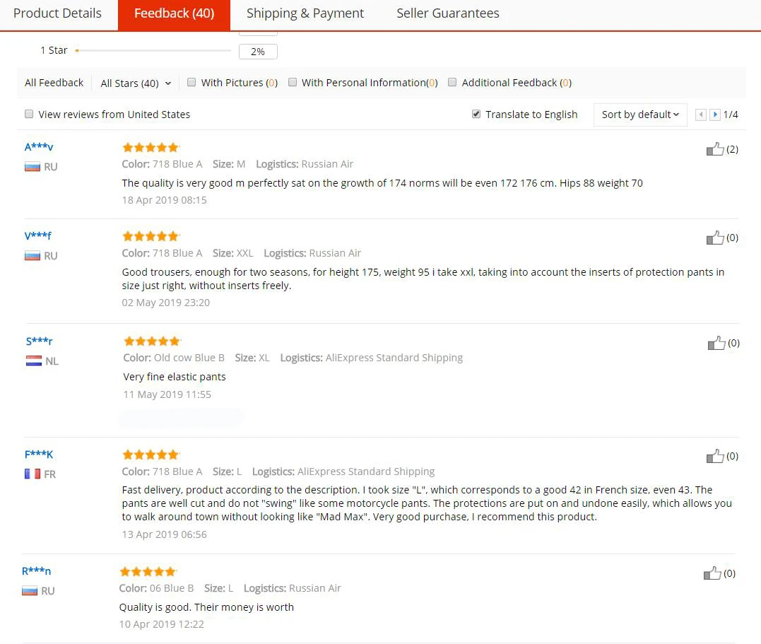 Отзывы и подробные оценки продавца