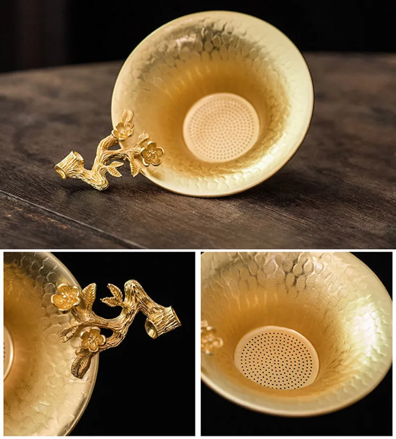 Набор для чая ручной работы из чистой меди, набор для утечки, Рельефный цветок сливы для кофе и чая, сетка для домашнего декора, коллекционный подарок