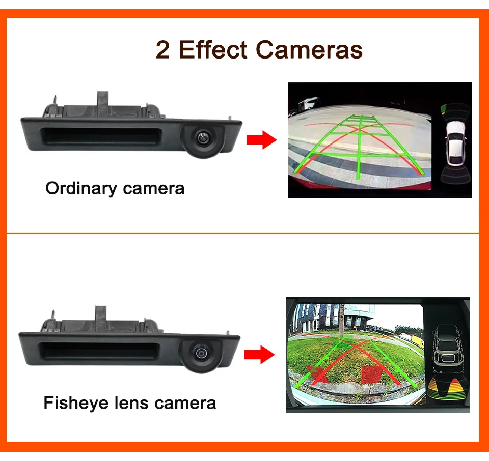Есть два варианта обычной камеры и камеры рыбий глаз. Угол линзы Рыбий глаз больше, и изображение более четкое. Камера имеет белую линейку, и линейка появится после резки.