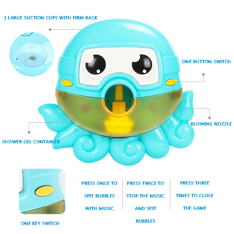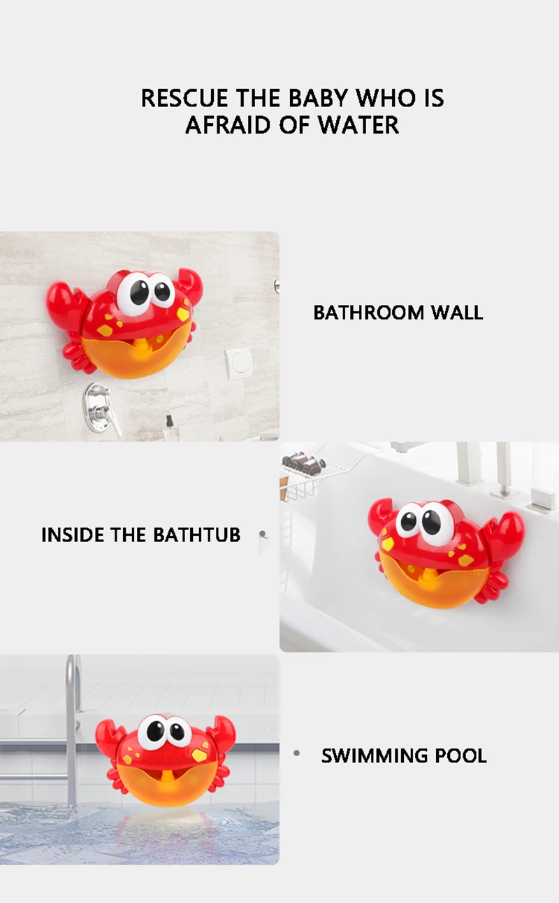 Bubble Machine ванна большой краб лягушка Автоматическая Bubble Maker воздуходувка 12 музыкальная песня игрушка для ванны для ребенка Удивительные пузырьки на выходе --- машина для пузырьков лягушки может производить красочное пузырчатое безумие. Выдувайте бесчисленные пузыри и развлекайте своих детей. Создайте сказочный мир пузырьков для детей. Добавив больше крема для ванны, пузырь больше. Прочный материал --- пузырьковая машина изготовлена из экологически чистого АБС-материала, нетоксичного, износостойкого, крепкого и не легко ломающегося, прочного для длительного использования. Дети будут играть весело с просмотром нагрузок захватывающих пузырей вылить из рта в непрерывном потоке! Простота в эксплуатации --- может быть прочно закреплена в ванной или на стене ванной комнаты с 3 чашками для сукций в задней части мыльной пузырчатой машины. Просто налейте раствор в резервуар, нажимая кнопку, чтобы обеспечить устойчивый поток пузырьков. Питание от 2 батарей AA (аккумуляторы не входят в комплект). Лучший подарок для ребенка --- Bubble Frog-это маленькое волшебное оружие, которое заставляет комнату для купания смеяться для всех возрастов ребенка, малыша и детей. Это также прекрасный детский душ, подарок на день рождения или вечерние подарки. Это добавит радости и приятной атмосферы вашей семье. Детский Надувной вентилятор встроен в 12 классическую музыку, которая может принести много счастья для ванны Размеры: Краб: 24x7x15,5 см Лягушки: 25x7x19,5 см КИТ: 26x8,5x20 см Осьминог: 21x8x19 см Подходит для детей старше 18 месяцев Материал: АБС-пластик Источник питания: 2 батарейки типа АА (не входят в комплект) Мы будем использовать надувную колонку для тонкой упаковки, пожалуйста, будьте уверены, что она может снизить стоимость продукта и предотвратить повреждение во время транспортировки. Примечание: Возможны незначительные отклонения в размере на 1-3 см (0,4-1,18 ") измерения выполнены вручную, допускаются отклонения в размере в пределах и небольшое отличие в цвете может незначительно отличаться из-за разных настроек экрана Спасибо за понимание, хороший день!