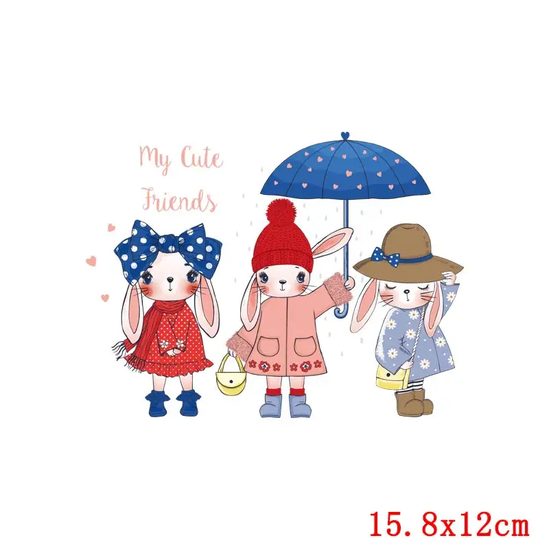 Серия Prajna с милым Кроликом, нашивки с утюгом на переноске, теплопередача, Мультяшные Гладильные наклейки на детскую футболку, аппликация из ткани