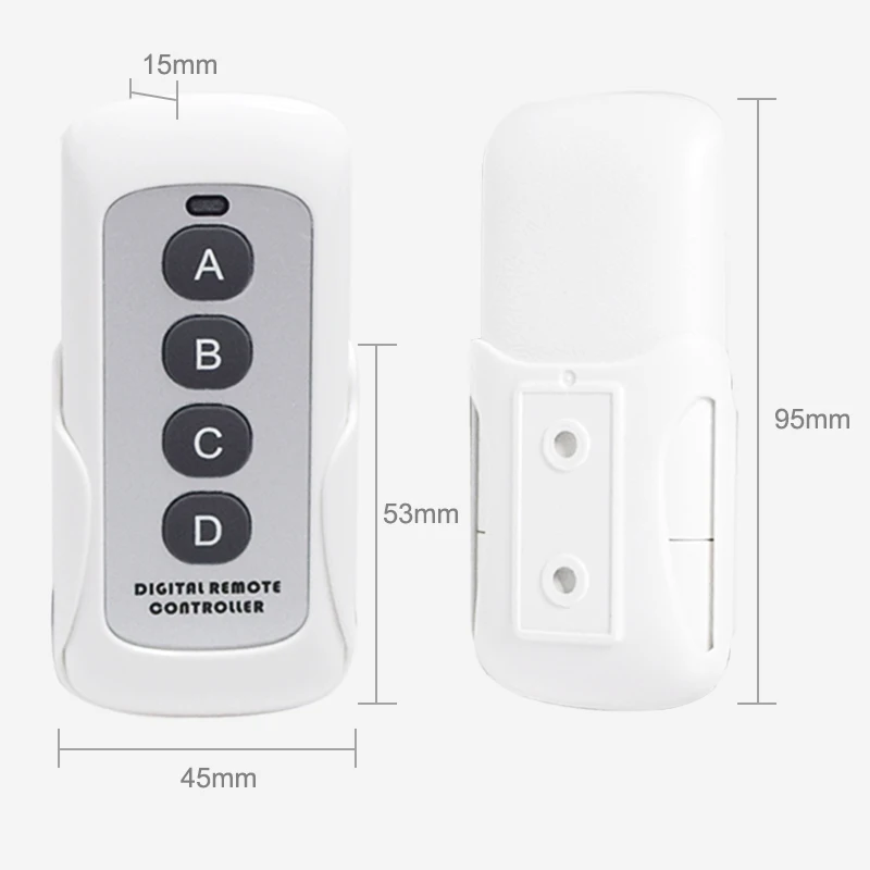 Дальнее управление. В комплект входит подставка для пульта дистанционного управления. Установите его там, где вам нравится, прост в использовании. Клонирование простое и занимает всего 30 секунд. Кнопки большие, удобные в использовании для пожилых людей и детей. Подходит для всех клонов дистанционного управления с фиксированным кодом 433 МГц. 1 новый пульт Можно клонировать 4 различных пульта.