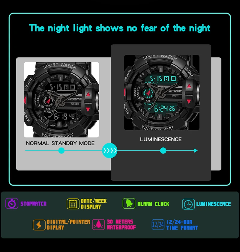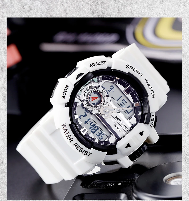 Часы наручные SANDA Мужские кварцевые Светодиодные, модные спортивные цифровые, в стиле милитари, водонепроницаемые