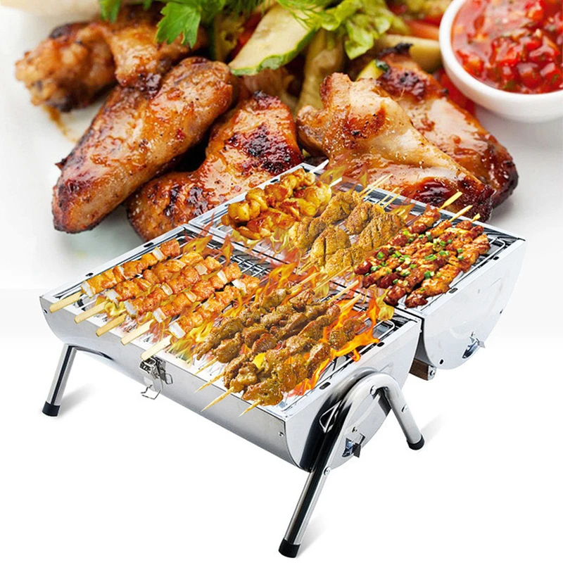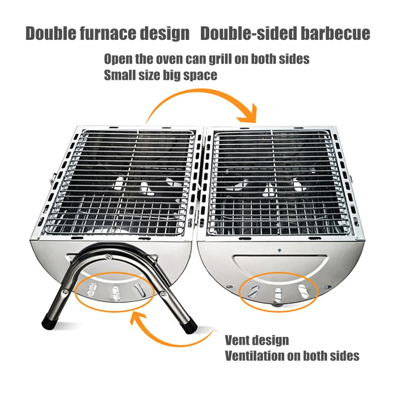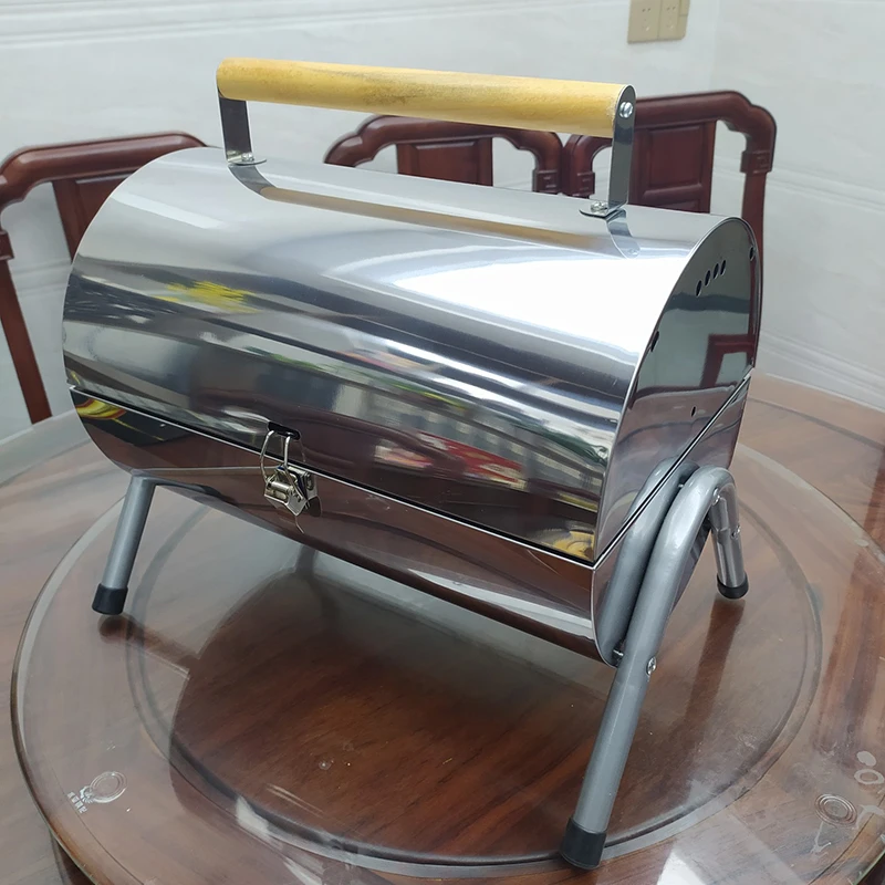 Гриль из нержавеющей стали Материал: нержавеющая сталь/гальванический гриль Размеры: 37,5*24,5*35 см Применимый номер: 4-8 человек Сцена: внутренний двор/открытый Метод барбекю: древесный уголь Новый стиль обновлен до деревянной ручки, которая изолирована и удобна в обращении.