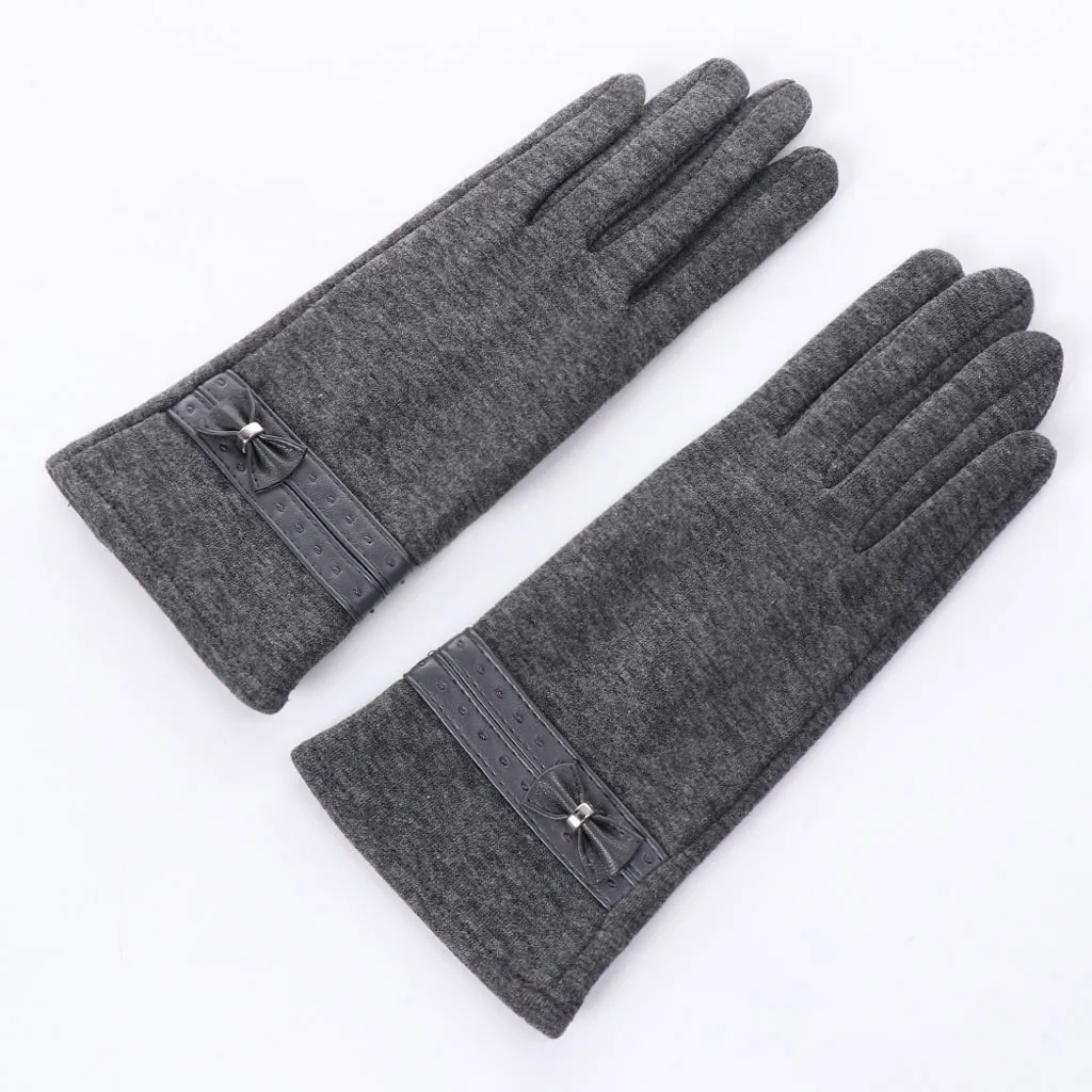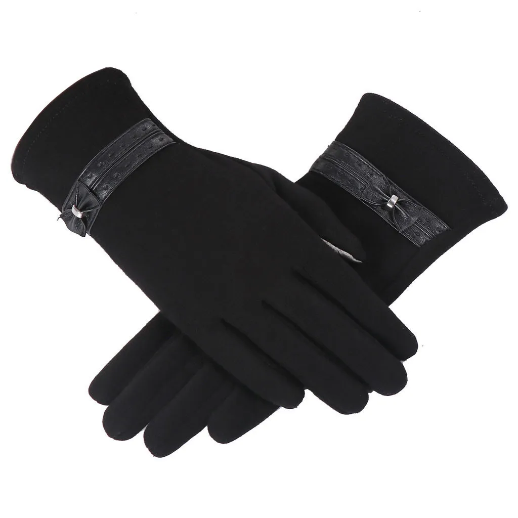 Для женщин женские зимние теплые перчатки с бантиком утепленные варежки