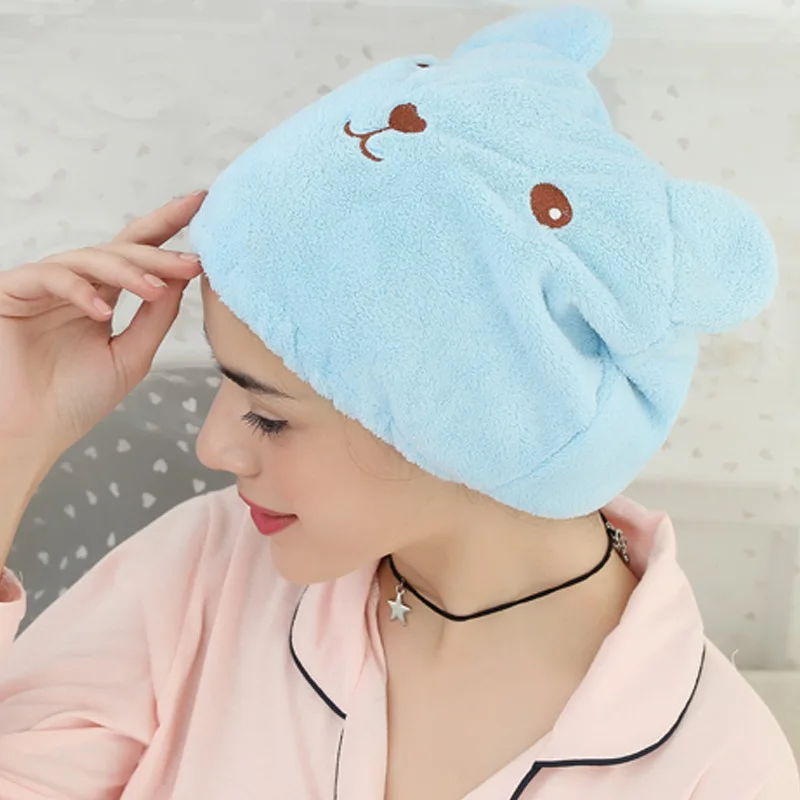 Новый милый медведь для ванной Кепки мягкой микрофибры тюрбан шапка для быстрой сушки волос завернутый Полотенца купальный Кепки волос Скорость сухой душ Кепки