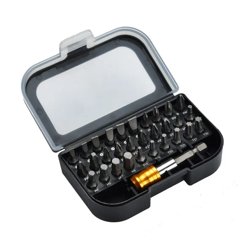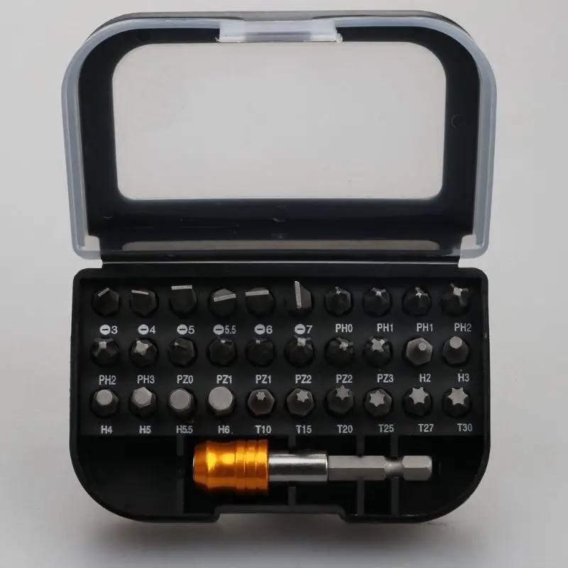 30 шт. наиболее часто используемых отверток (6 шт. каждого креста, шлицевых, Torx, Hex, Pozi) с 1x быстроразъемным шестигранным удлинительным адаптером может удовлетворить большинство потребностей в вождении винтов в повседневной жизни.