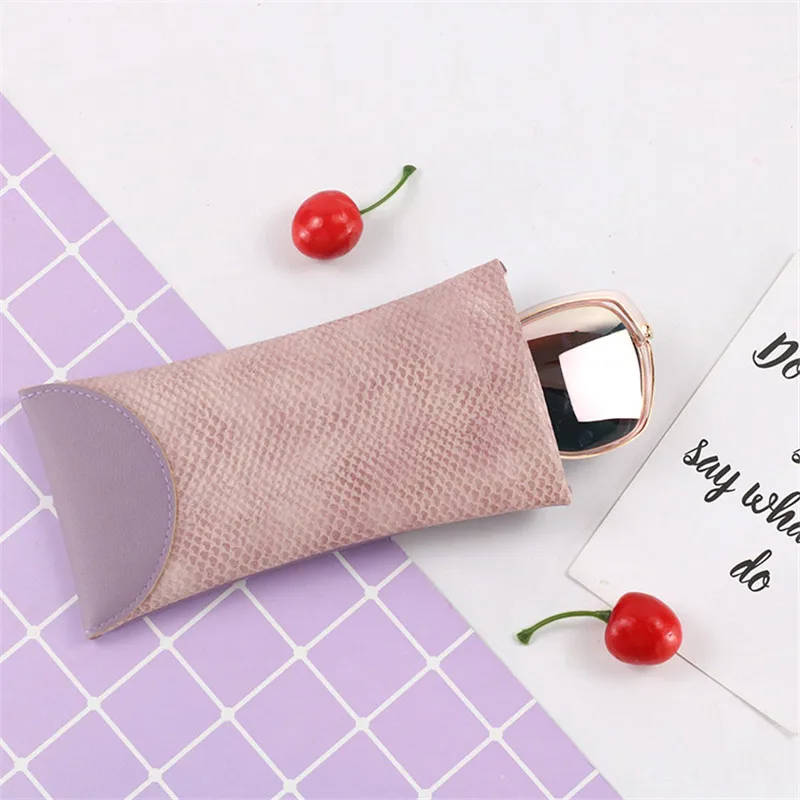 Тип товара: Чехол для очков Материал: из искусственной кожи Узор: принт змеиной кожи Размер: 18.* 9 см Цвет: фиолетовый, розовый, серый светильник-зеленый Посылка входит: Чехол для очков 1 шт. (очки в комплект не входят)