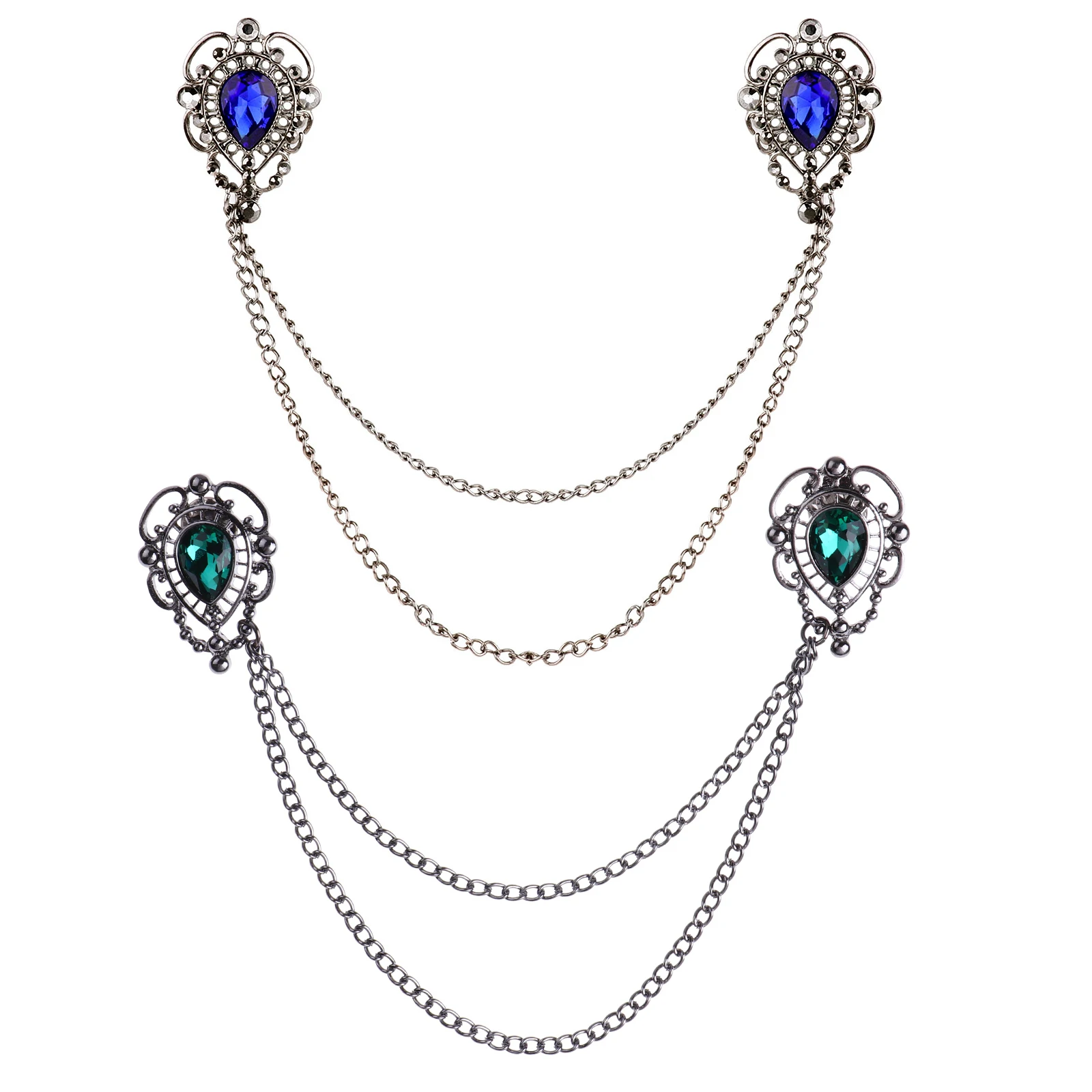 Корейские стразы брошь кисточка цепь лацкан булавка для женщин мужчин рубашка воротник булавки значок корсаж Винтаж античный Элегантный Модный Свитер Цепочка-накидка клипсы кардиган воротник держатели украшения