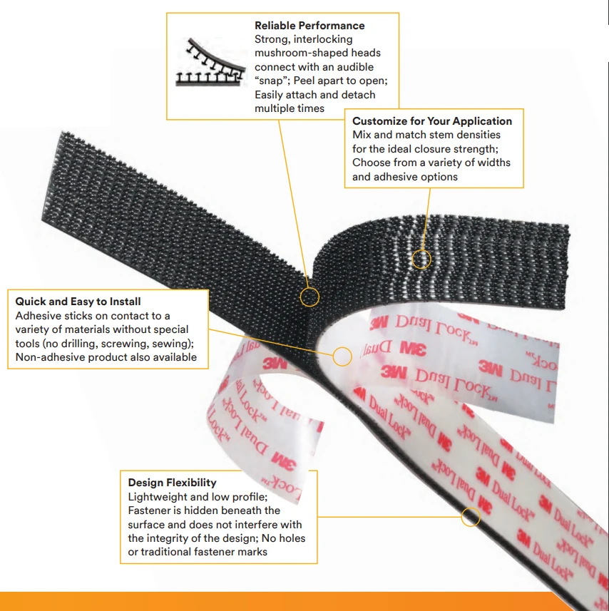 Повторно закрывающийся зажим с двойным замком 3 м SJ3550 является удобной альтернативой традиционным методам крепления, таким как винты, гайки или болты. Он предназначен для обеспечения прочного, повторно закрываемого раствора крепления (который можно открывать и закрывать несколько раз), который связывается с различными подложками, включая металлы и пластмассы, такие как акрилы, поликарбонат и АБС.