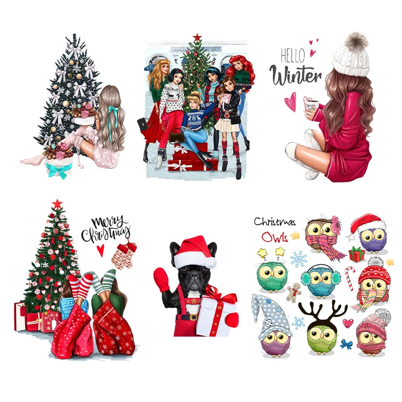 Рождественский термоперенос для одежды, для девочек, сделай сам, нашивки, аппликации на капюшоне, железный перенос, моющиеся зимние наклейки на одежду