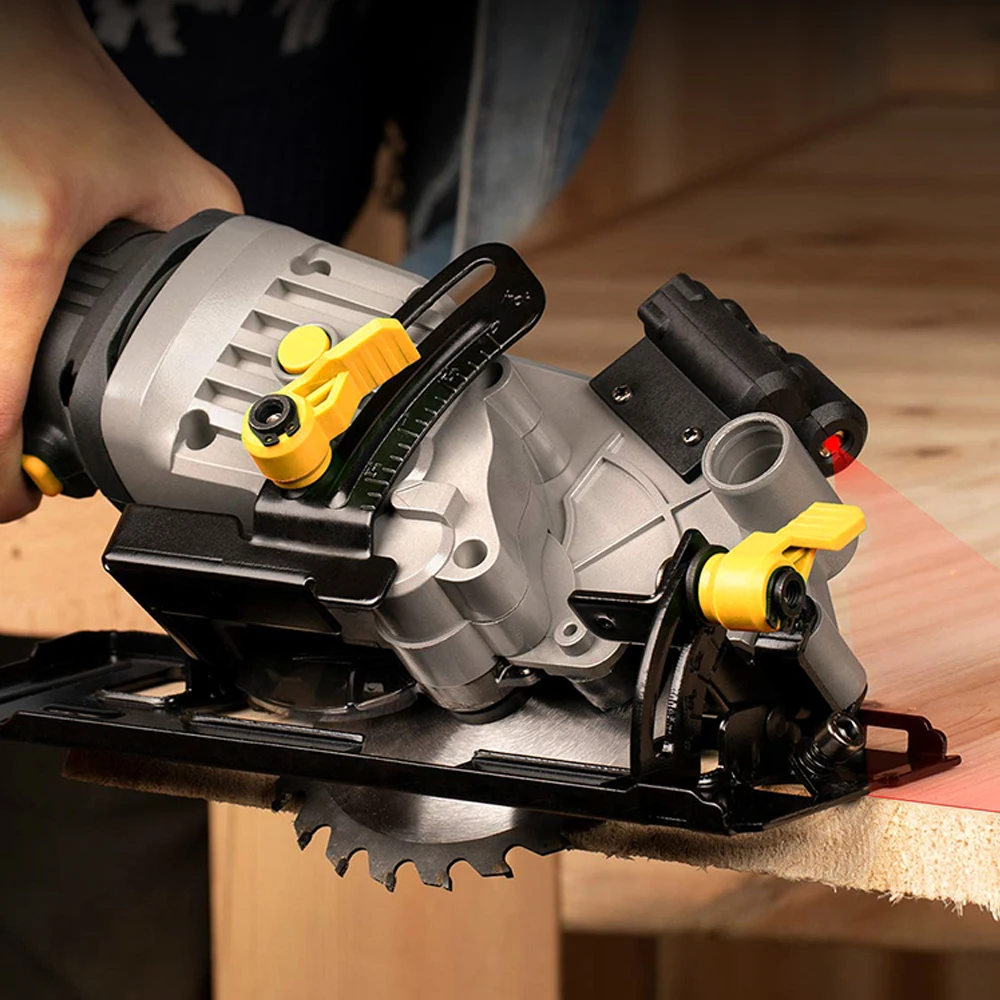 Характеристики:Цвет: черный и желтыйМатериал: сплавTCT 24T Диаметр лезвия: 115 ммСкорость: Макс 10000 об/минНоминальная мощность: 600 ВтВилка: вилка стандарта США (мы вышлем Вам адаптер в соответствии с вашей страной)Длина кабеля питания: 2 мРабочее напряжение: 220 ВОсобенности:1. Лазерная контрастная резка. Одиночный лазерный луч для точной прямой резки.2. Параллельная направляющая резка для определенной ширины реза, обеспечивающая прямые, точные срезы легко и быстро.3. 600 Вт. Долговечность медного двигателя резко продлевает срок службы вашей пилы.4. Конструкция левого лезвия для лучшей видимости.5. Регулируемый угол наклона резки от 0 ° до 45 ° для использования многоугольных черенков.6. Глубина прямого реза 45 мм и глубина скоса 30 мм для регулировки.7. Выхлопная труба от пыли может подключаться к циркулярной Пиле, не давая вам разлетаться опилкам.8. Легкая конструкция снижает усталость работы одной рукой.9. Оптимизированная резиновая ручка для защиты от потоотделения.10. Съемная Поворотная Нижняя защита и кнопка блокировки для безопасного использования.Посылка входит:1 дисковая пила1 Лезвие TCT 24T1 x параллельная направляющаяШестиугольный гаечный ключ-1 шт.1 x выхлопная труба
