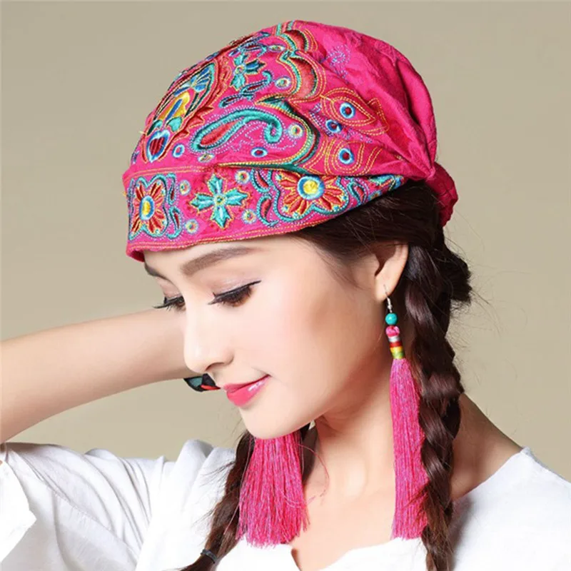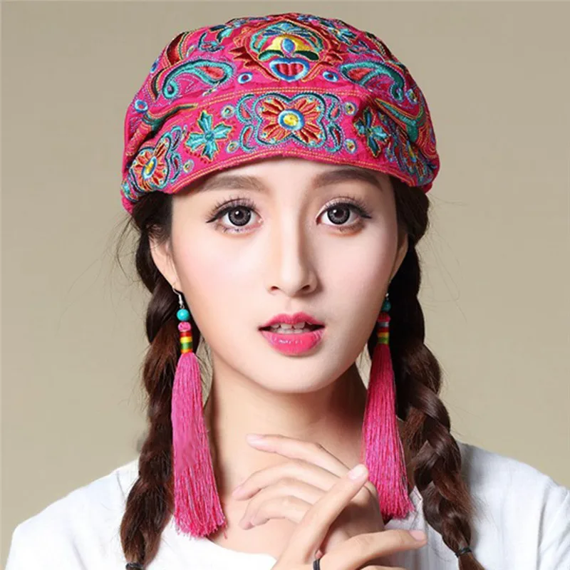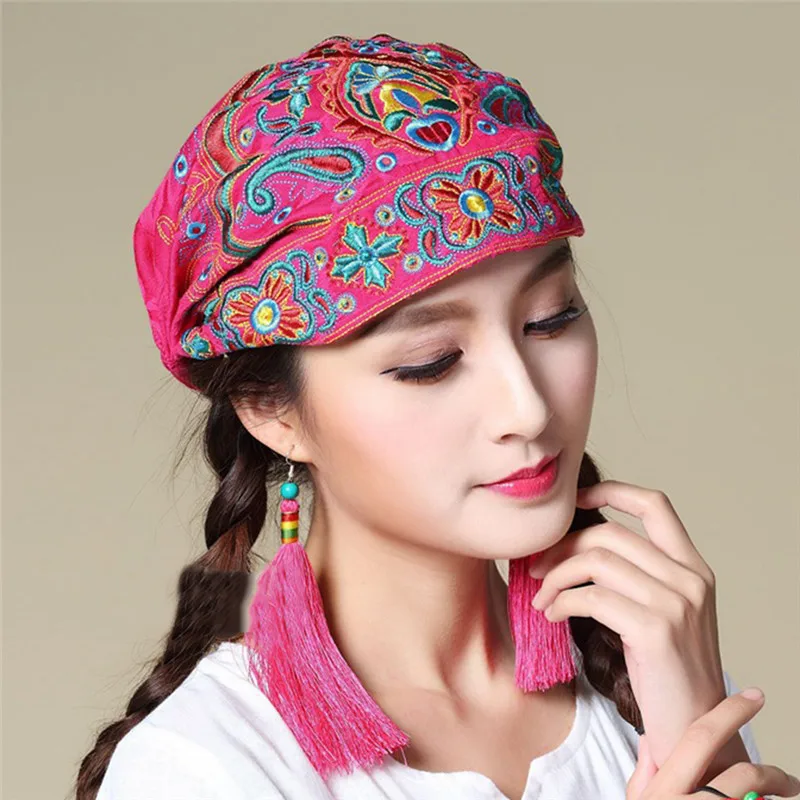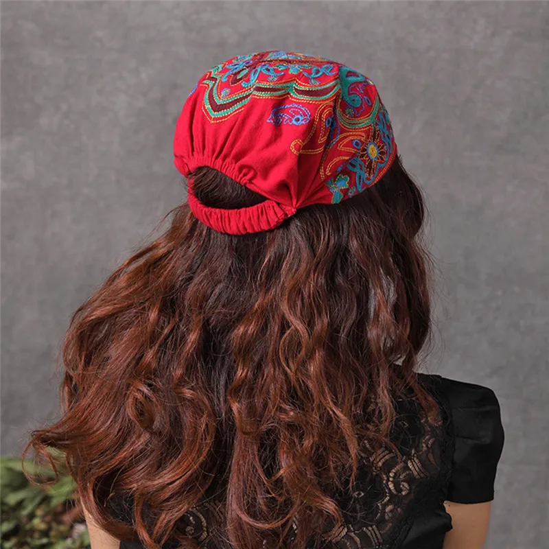 Женские этнические винтажные банданы в мексиканском стиле с цветочной вышивкой шапка с красным принтом женская меховая зимняя шапка для женщин