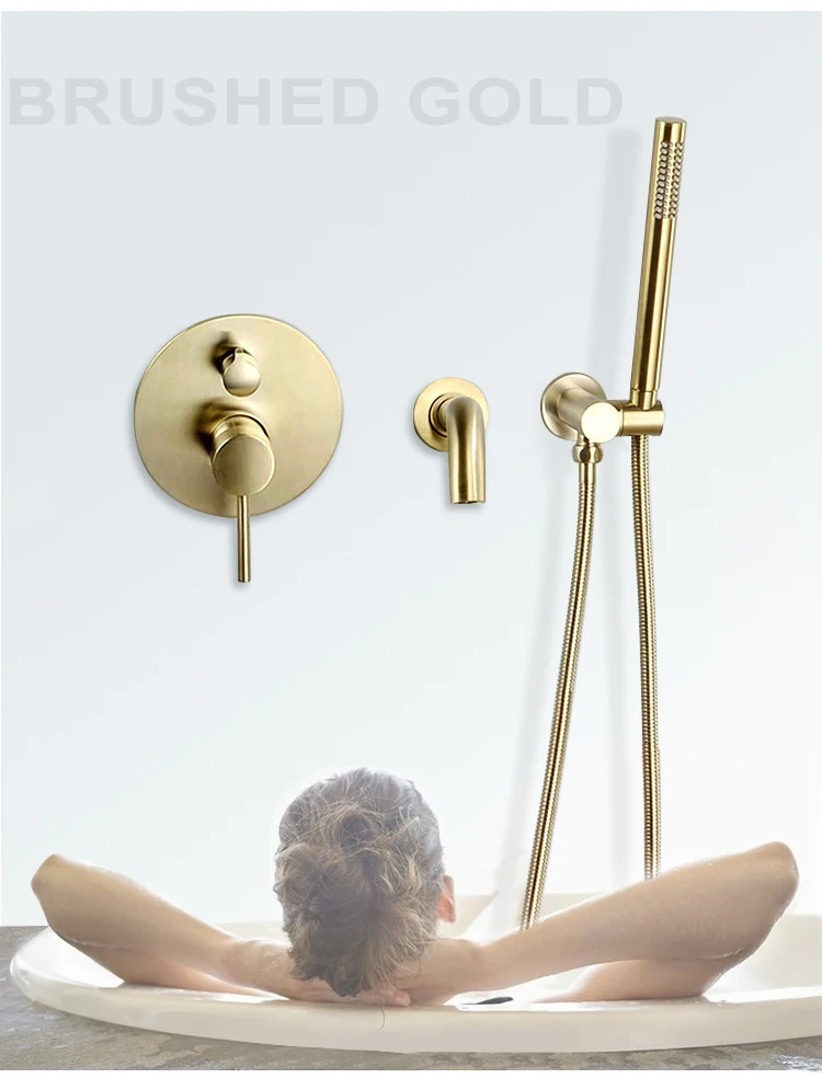 Весь набор включает: смеситель для ванны + медный кронштейн + ручной душ + шланг для душа