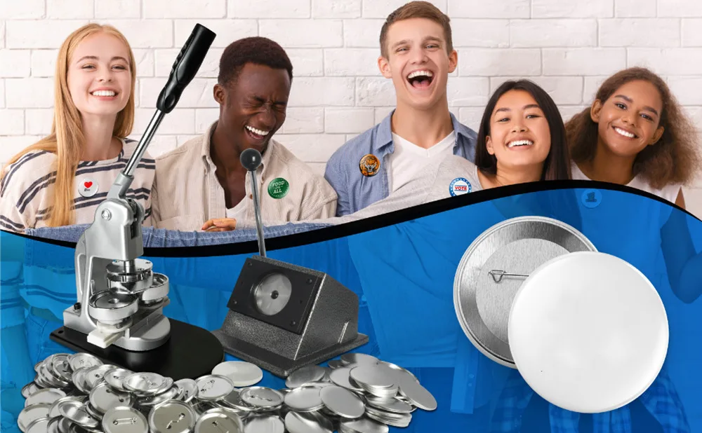 A total of 100/200 sets badge making materials, can be used for a long term.