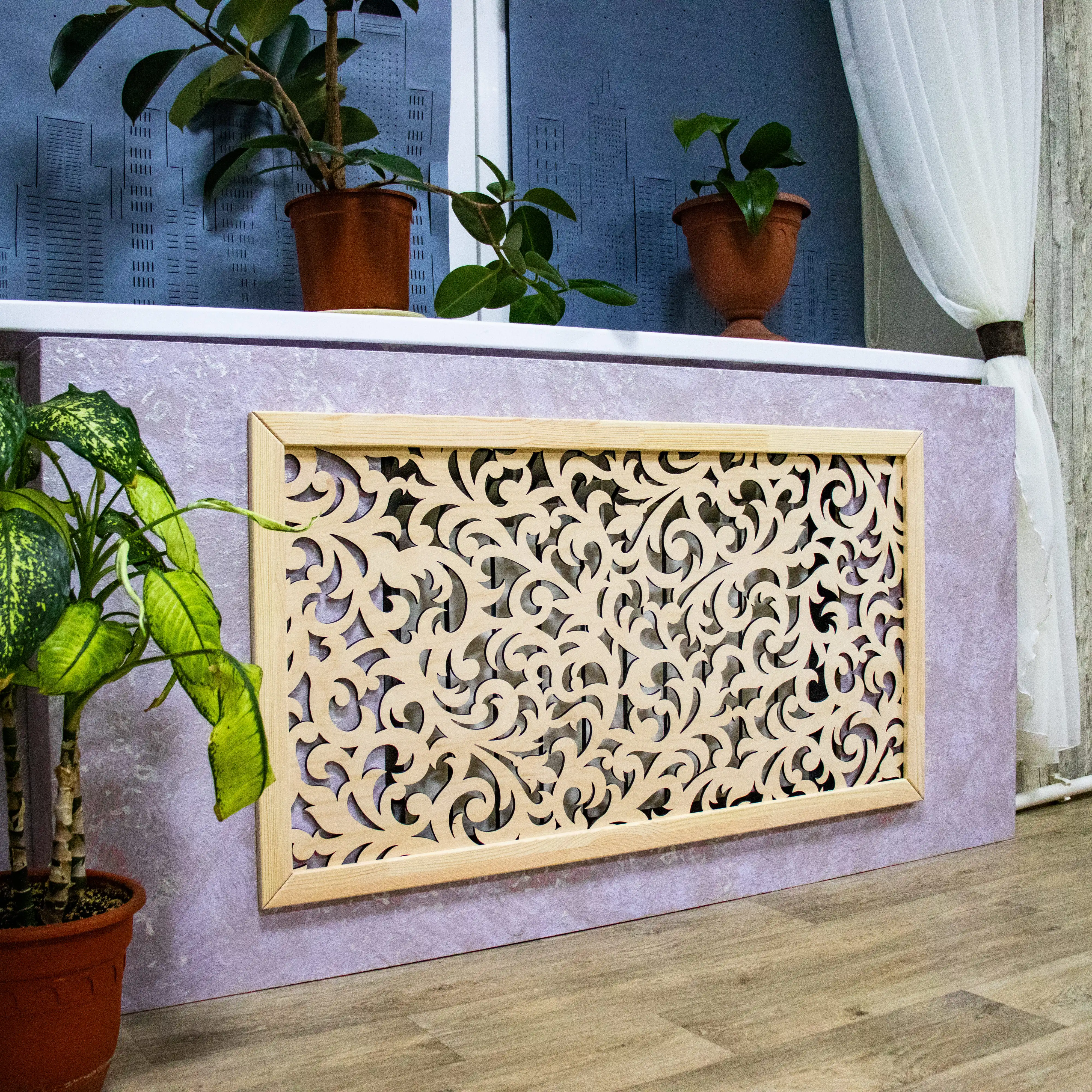 Экологичный, деревянный декоративный экран для батареи с подвесами. Защита детей от ожогов, удара. Неповторимый стиль и дизайн вашего дома, квартиры, офиса. Вешается, как обычная картина.