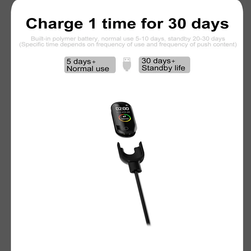 7 дней, быстрая зарядка в течение 2 часов (usb-зарядка, usb-кабель в комплекте)