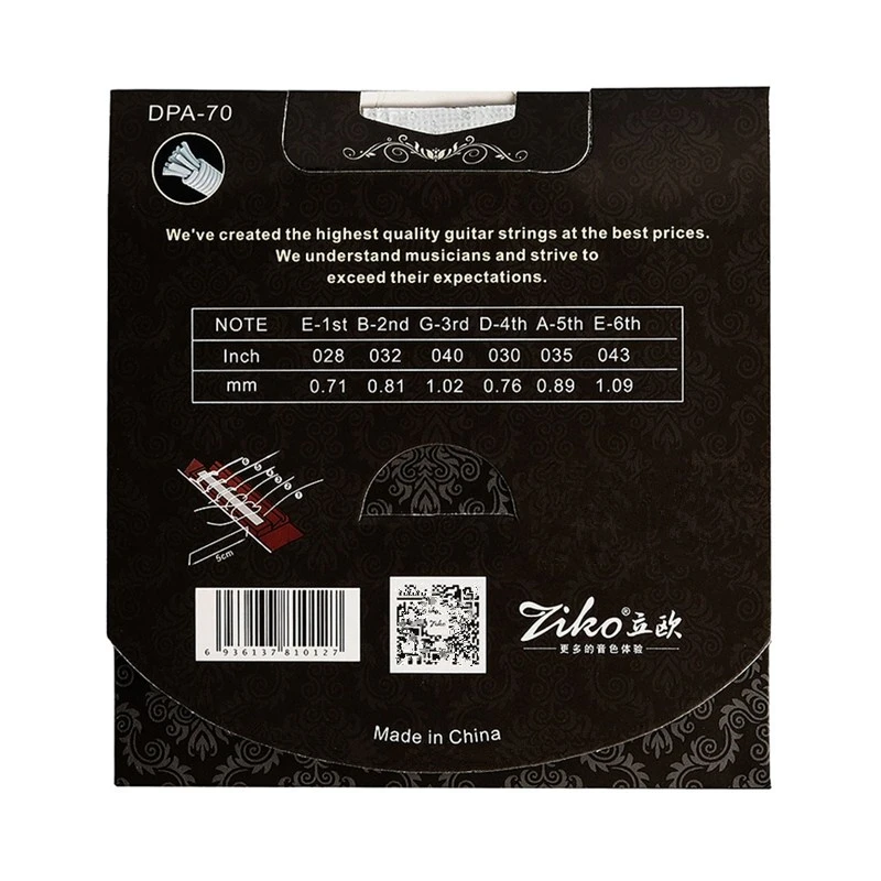 Дорогой друг,Спасибо за покупку в нашем магазинеИ есть две информации о защите, возможно, вы можете знать, прежде чем разместить заказ, спасибо.1. О товаре, мы выдадим полный возврат или повторно для вас, если он не может доставить вам успех, когда мы его подтвердили, спасибо.2. О дефектном товаре, пожалуйста, не стесняйтесь связаться с нами, когда получите его, прежде чем открыть спор или оставить отзывы, мы будем иметь дело с хорошо для вас в первый раз, спасибо.3.Все пакеты могут отслеживать информацию о доставке, не беспокоясь о потере товаров.Пожалуйста, наслаждайтесь покупками в нашем магазине, не беспокоясь.Описание товара1. Бренд: ZIKO2.Прозрачный нейлонНейлоновый сердечник80/20 Посеребренная Медная раненная3. Бумажная коробка4. Размер коробки: 11 см * 11 см5. Размер DPA-70: E-1st 0,028, B-2nd 0,032, G-3rd 0,040, D-4th 0,030, A-5th 0,035, E-6th 0,0436. Посылка:1 комплектФотографии продуктаНа данный момент, вы можете произвести оплату при помощи Boleto, Visa, Master Card, QIWI, Western Union, дебитной карточки Maestro, WebMoney или банковского перевода. В дальнейшем будут доступны другие варианты оплаты на Aliexpress.