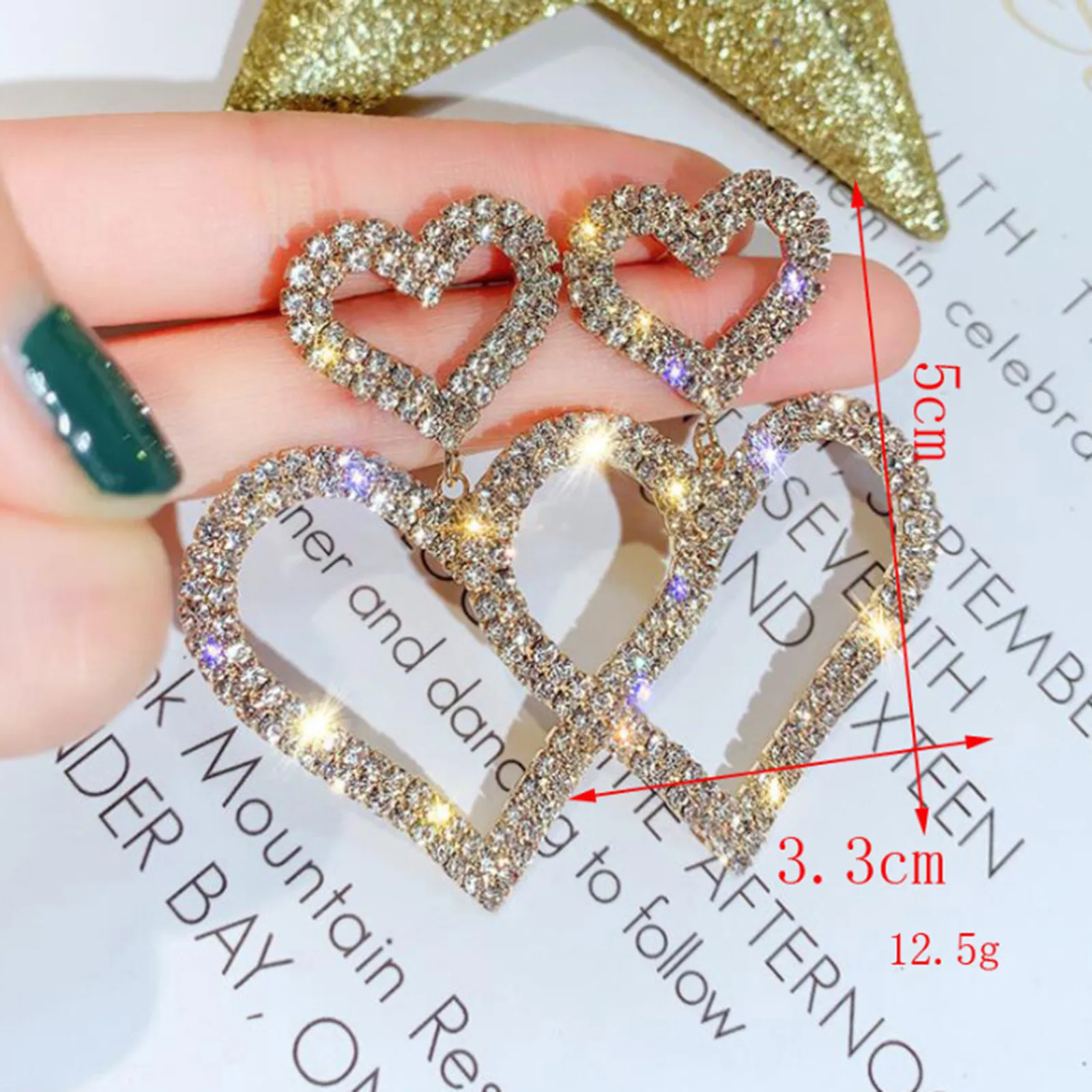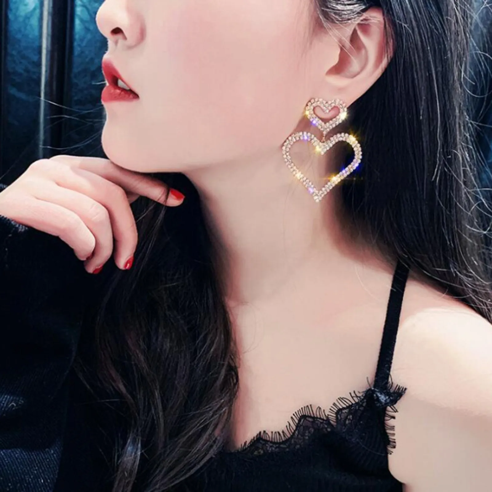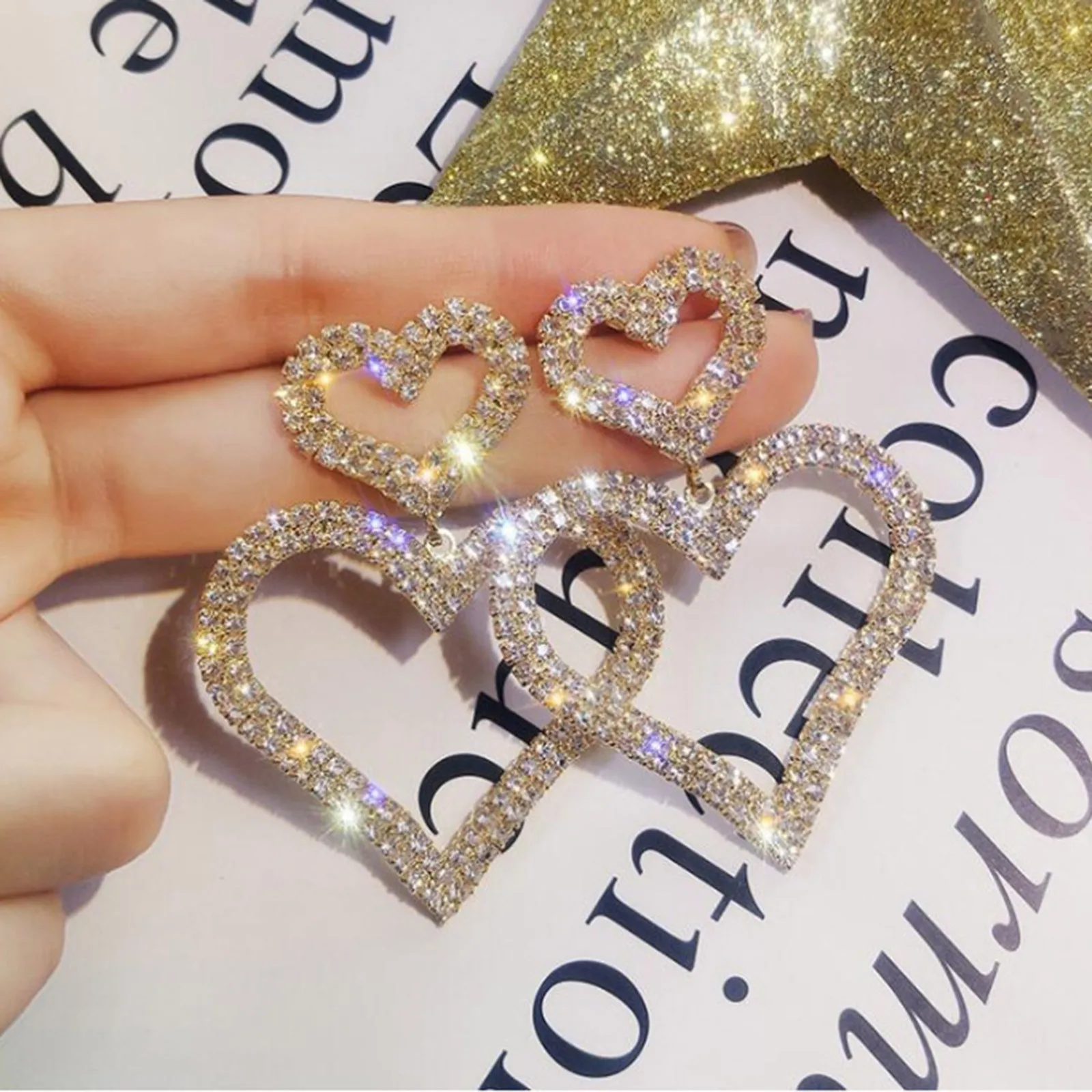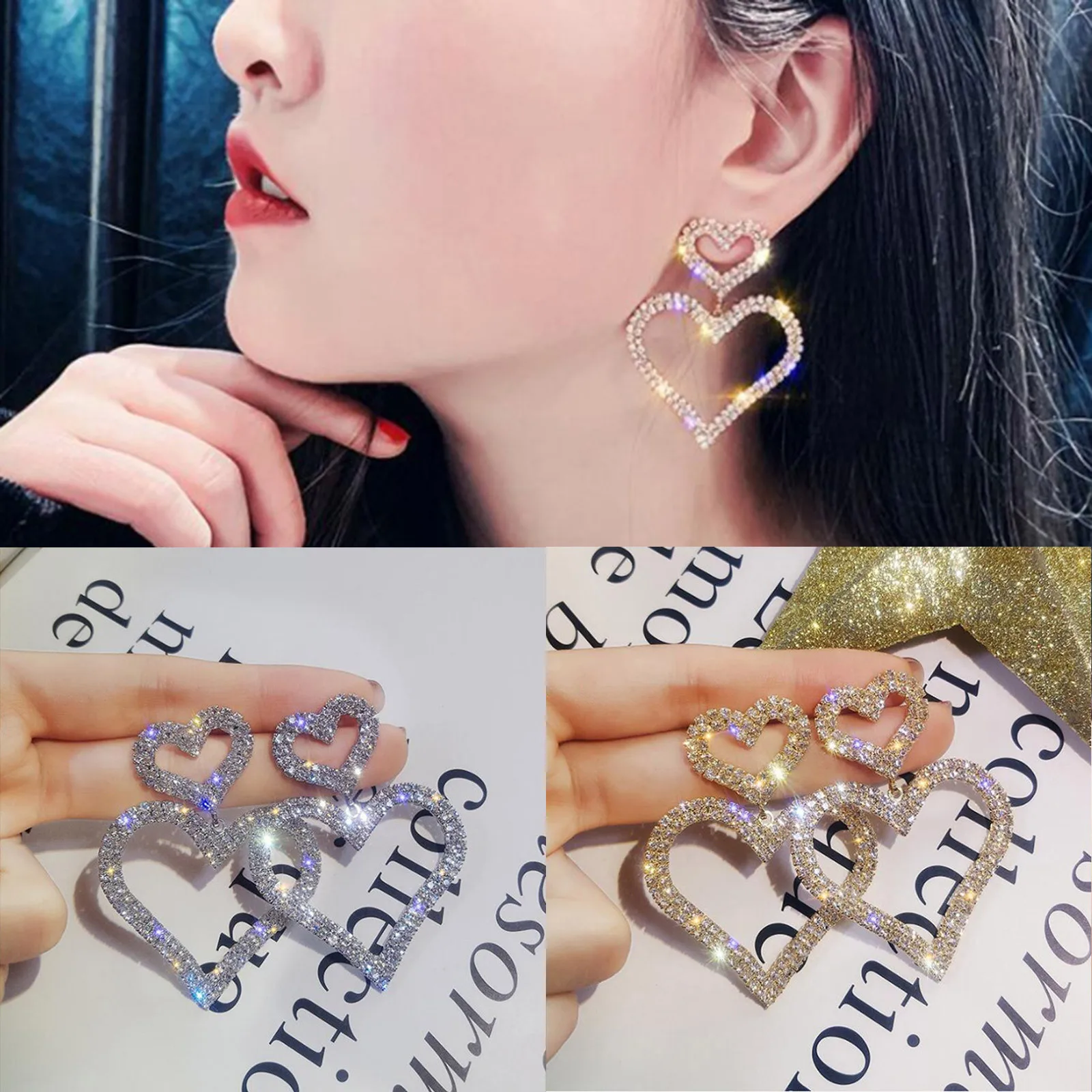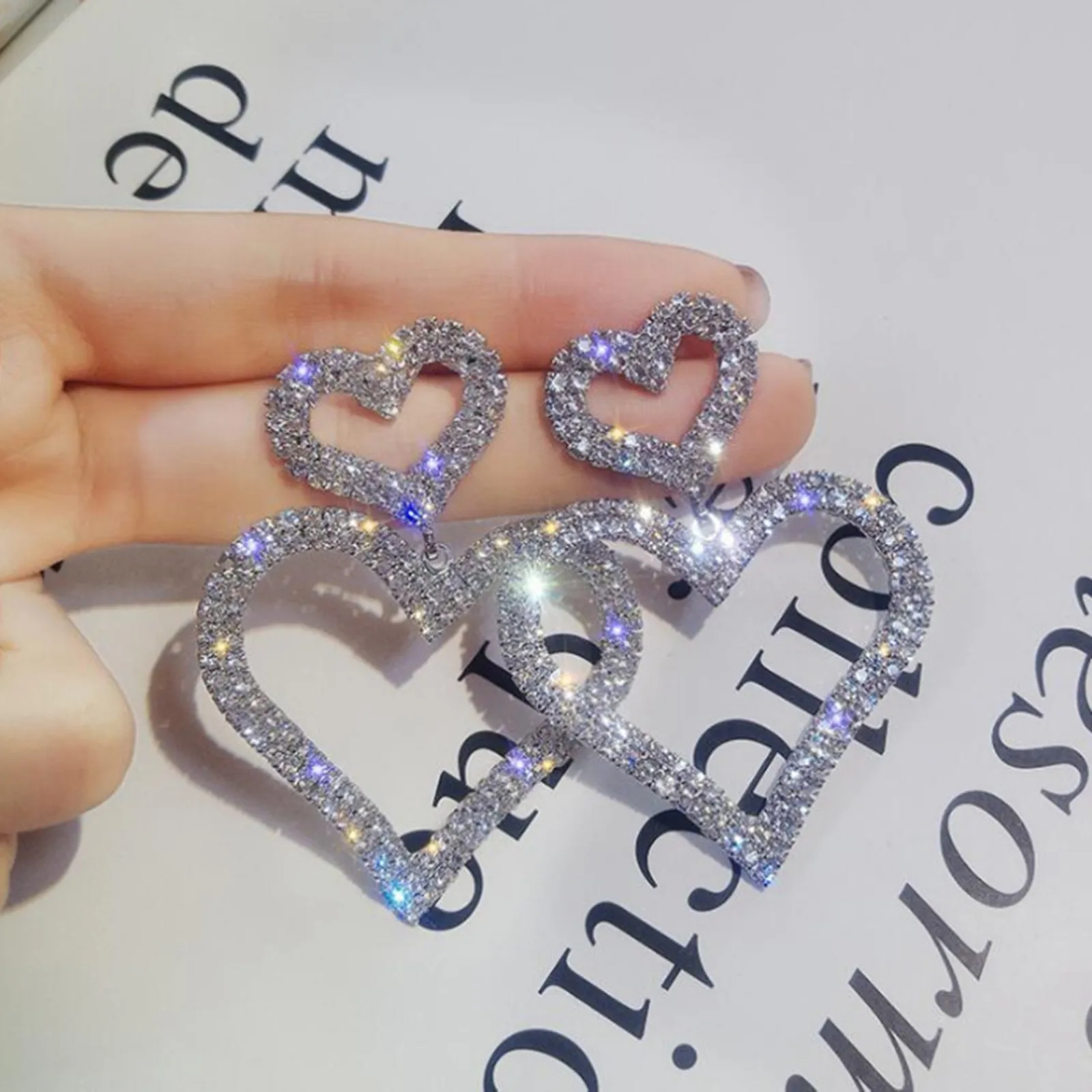 Серьги для женщин, полые серьги с бриллиантами в форме сердца, двойные ювелирные изделия