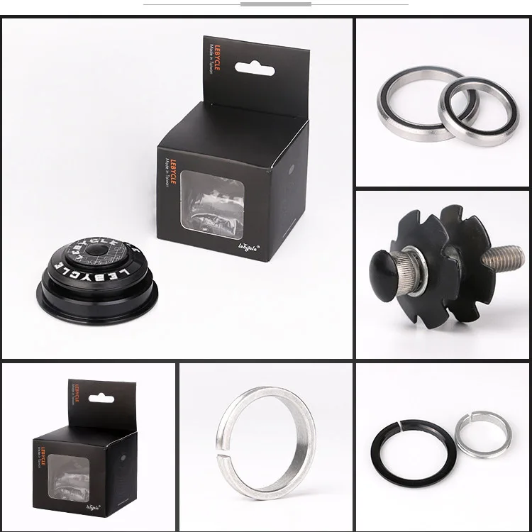 Название продукта: двойной подшипник конусной головки трубки гарнитуры Спецификация: 28,6/44-56/30 или 39,8 Материал: 6061 алюминиевый сплав + Подшипники Seiko Вес: 140 г Цвет: черный Применение: рама с внутренним диаметром головки трубки 44-56 мм, может быть сочетается с 28,6 мм прямой вилкой или 1,5 конусной вилкой